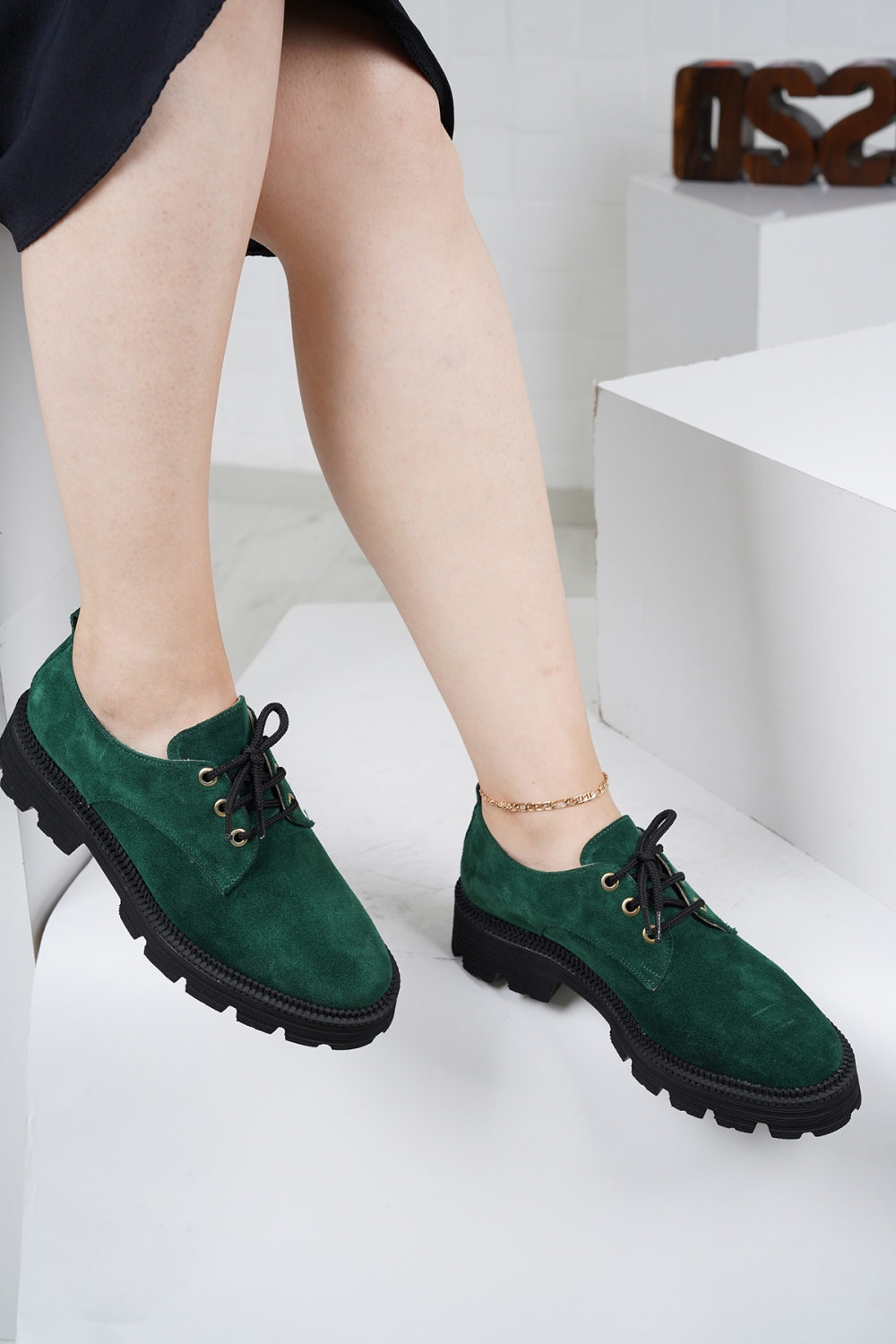 Hakiki Deri Çimen Yeşili Süet Kadın Oxford Ayakkabı 222127101