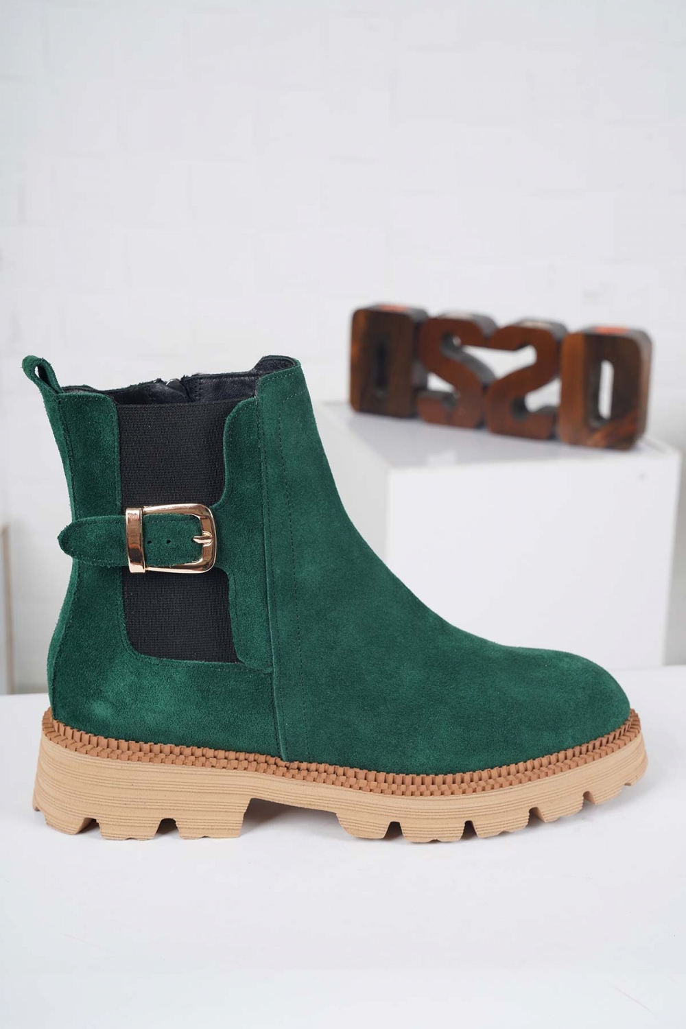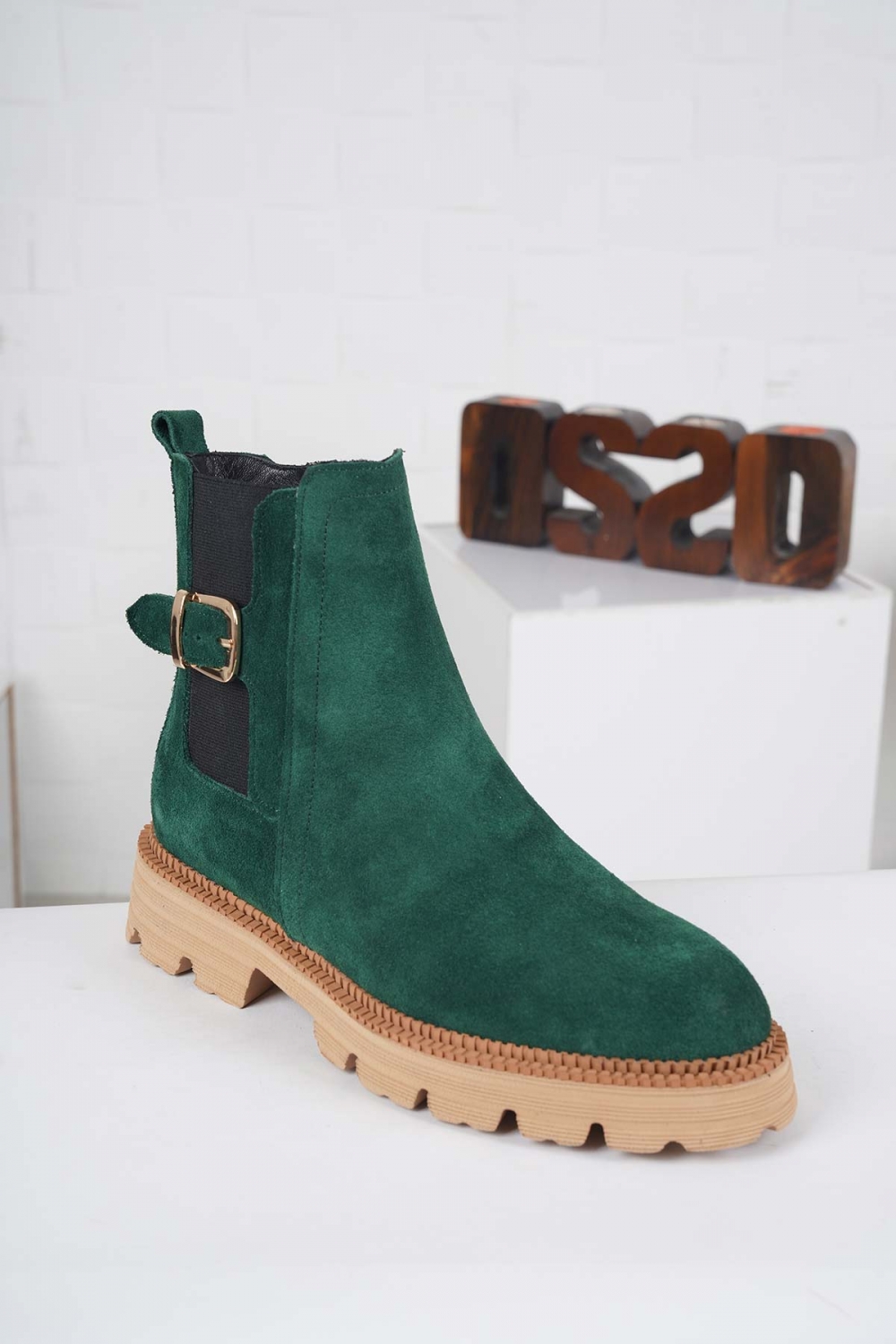 Hakiki Deri Çimen Yeşili Süet Kadın Topuklu Bot 232127208