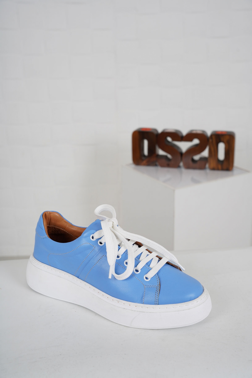 Hakiki Deri Deniz Mavisi Kadın Sneaker Ayakkabı 212220102