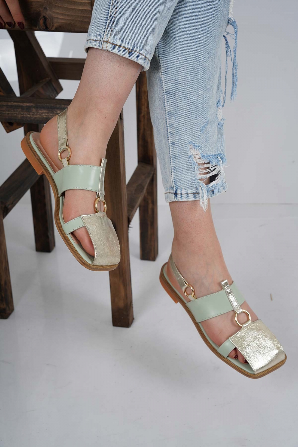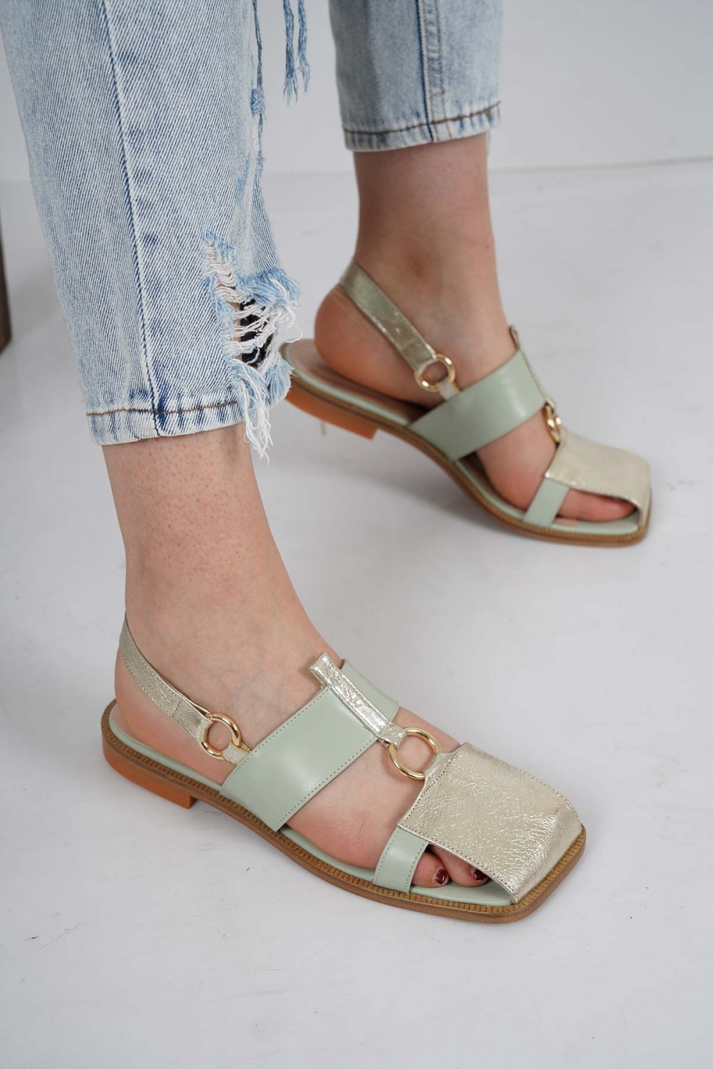 Hakiki Deri Dore-Mint Kadın Burun Kapalı Sandalet 221127515