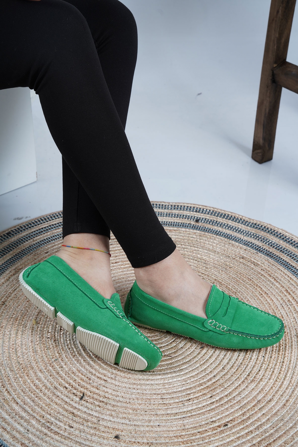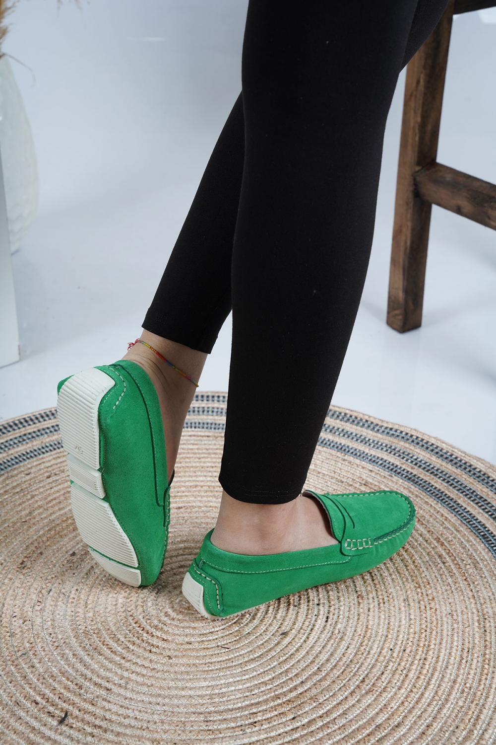 Hakiki Deri Fıstık Yeşil Süet Kadın Makosen Ayakkabı 221209106