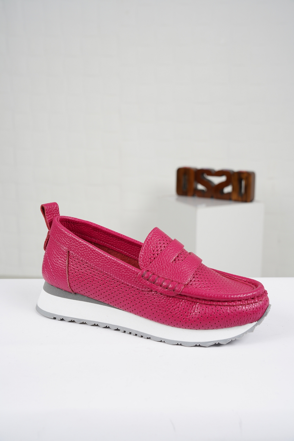Hakiki Deri Fuşya Floter Kadın Casual Ayakkabı 221126101