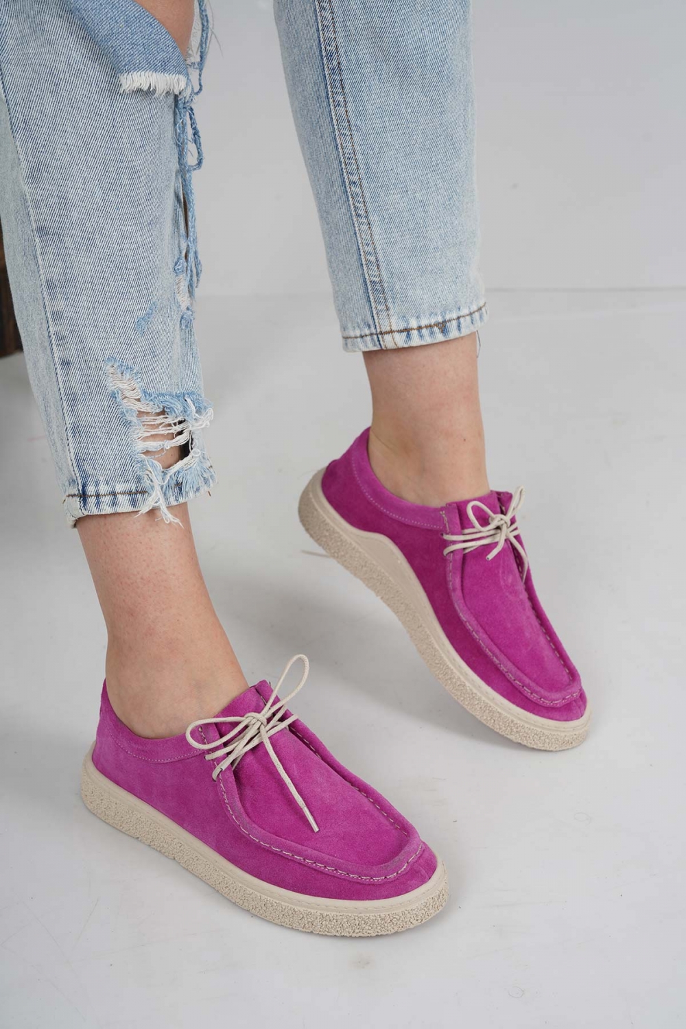 Hakiki Deri Fuşya Süet Kadın Casual Ayakkabı 231220108