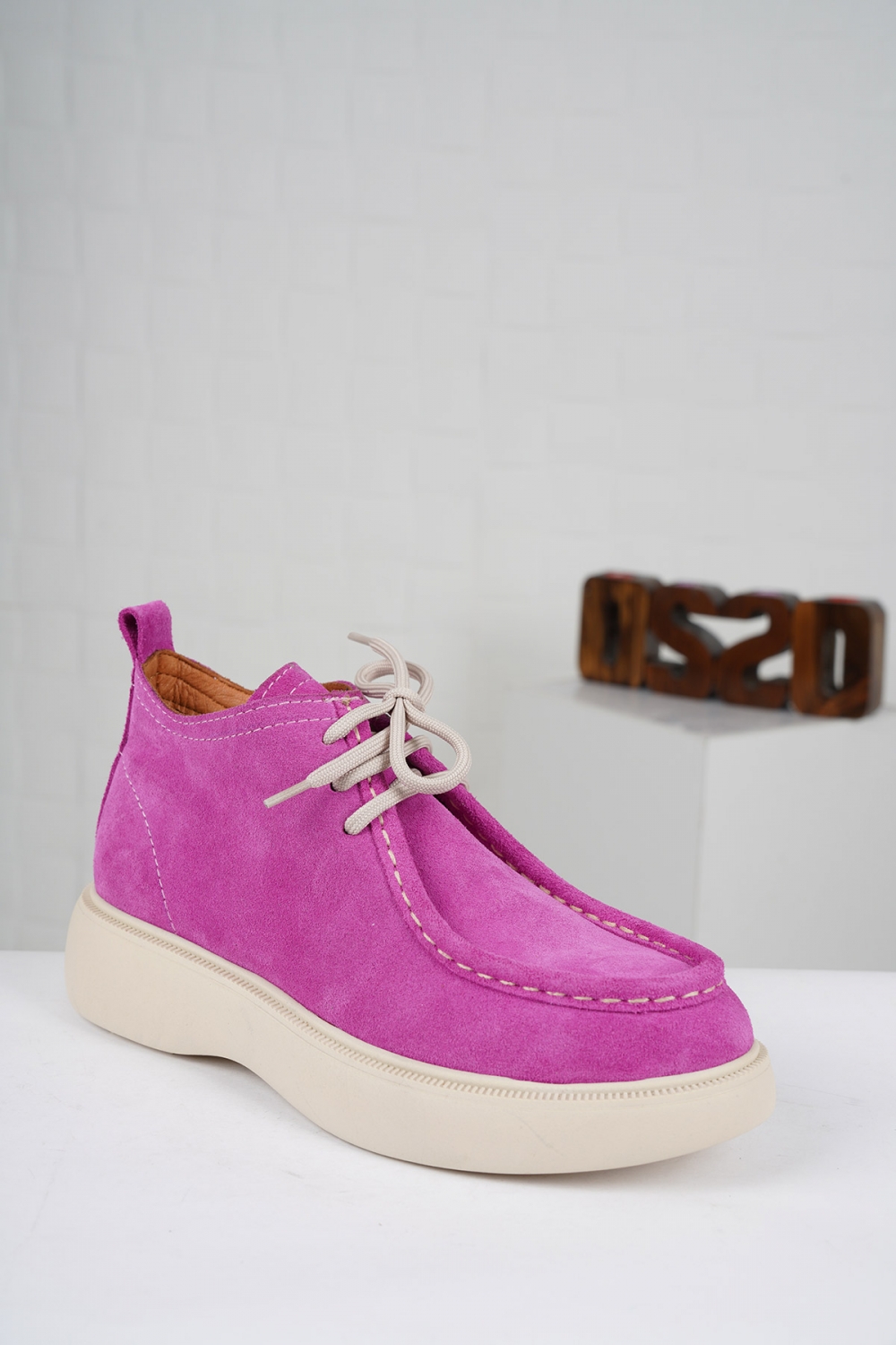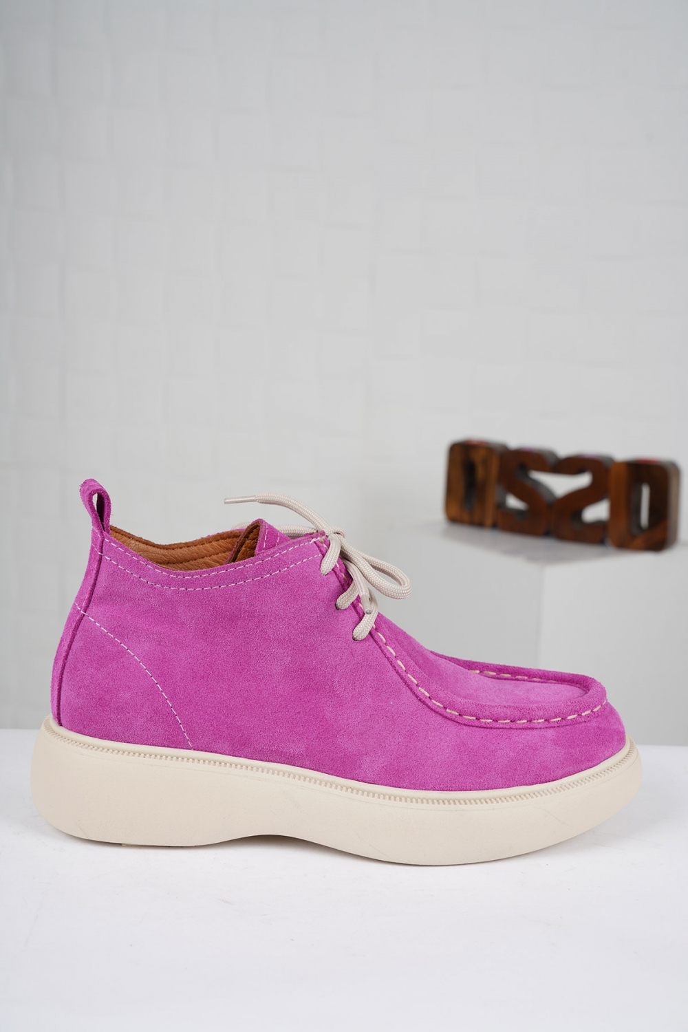 Hakiki Deri Fuşya Süet Kadın Kısa Bot 222209202