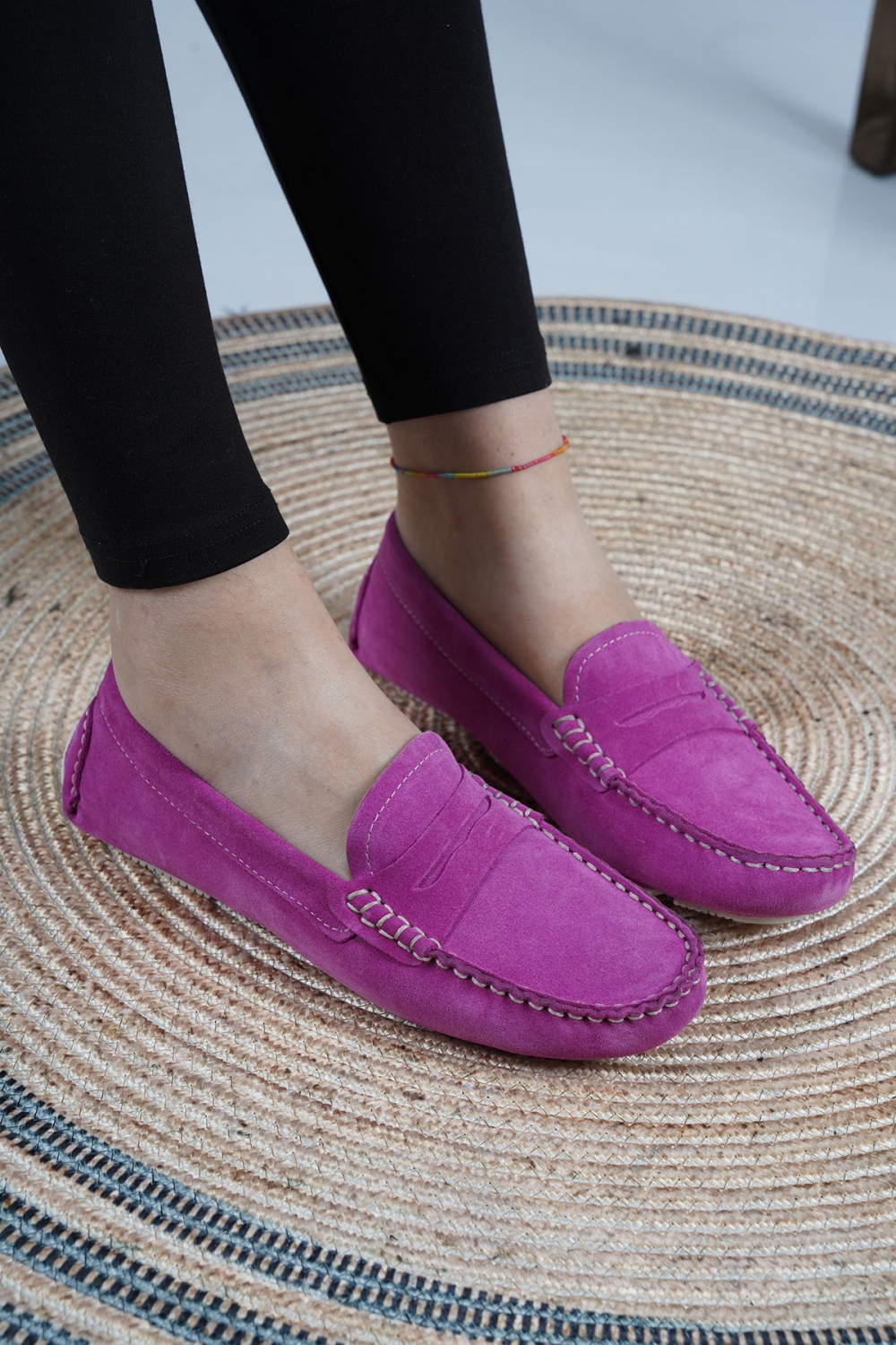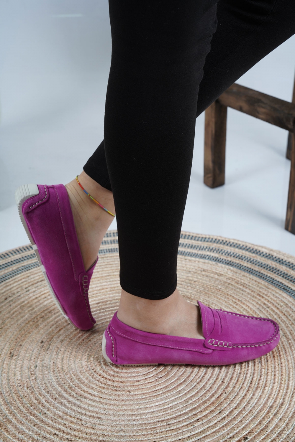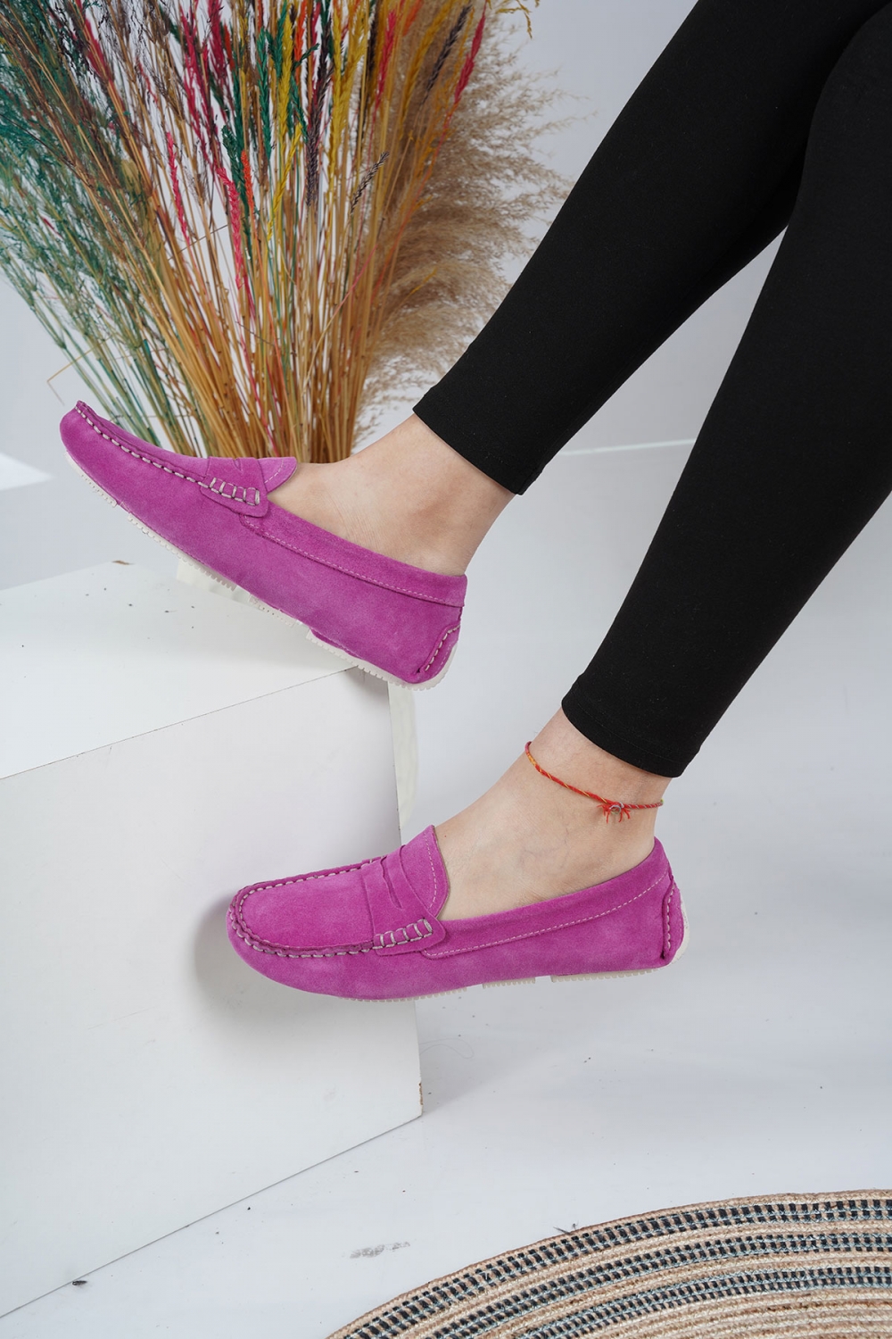 Hakiki Deri Fuşya Süet Kadın Makosen Ayakkabı 221209106