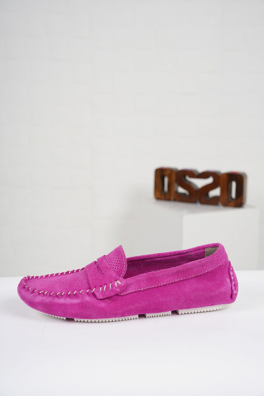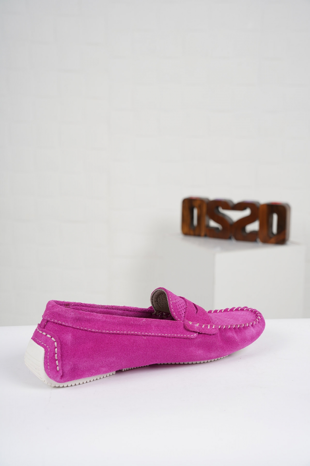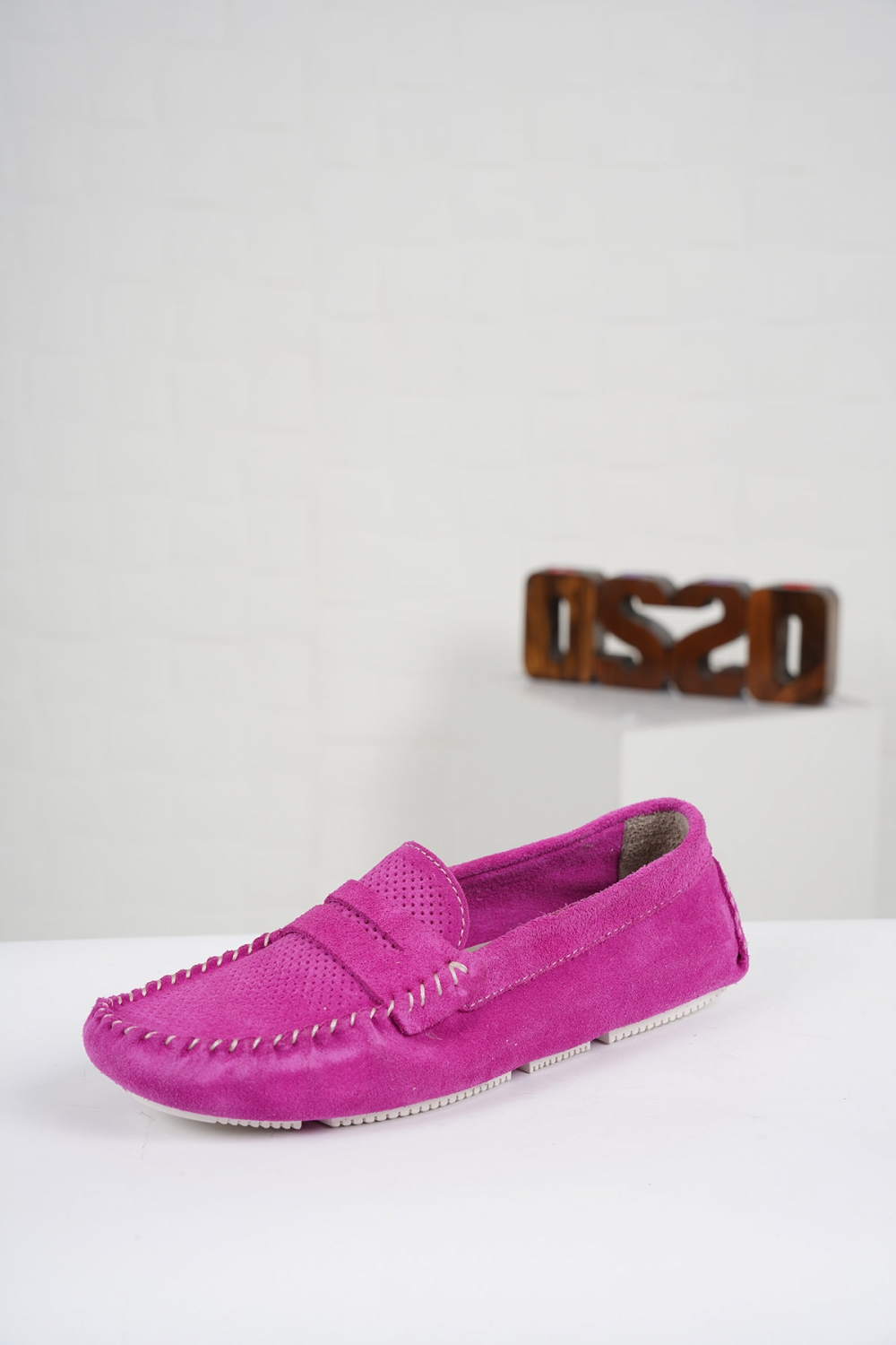 Hakiki Deri Fuşya Süet Kadın Makosen Ayakkabı 221209115