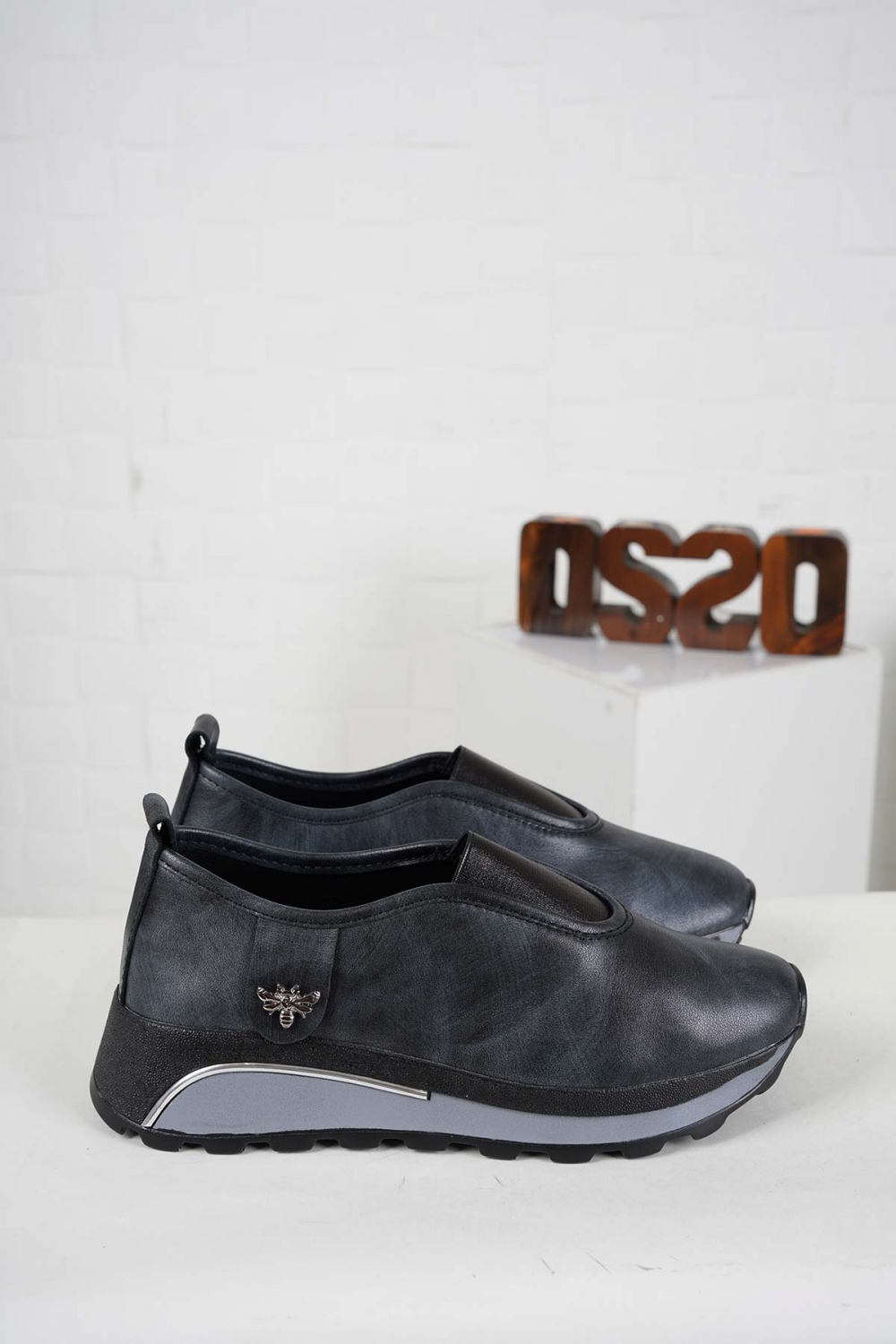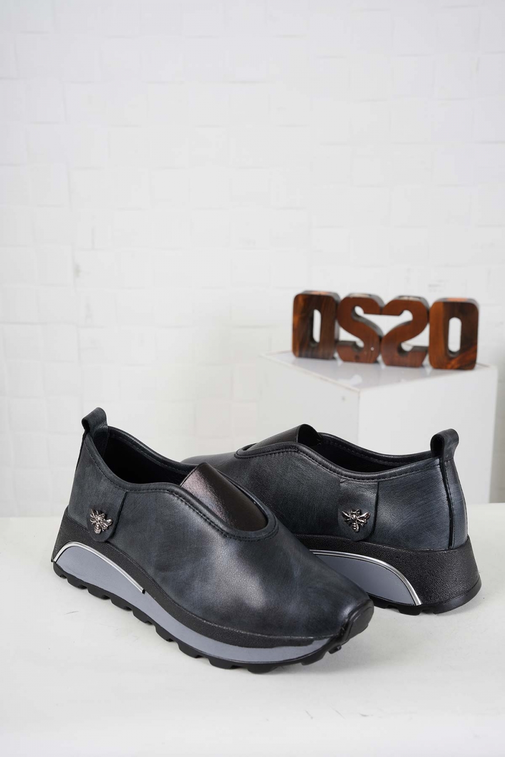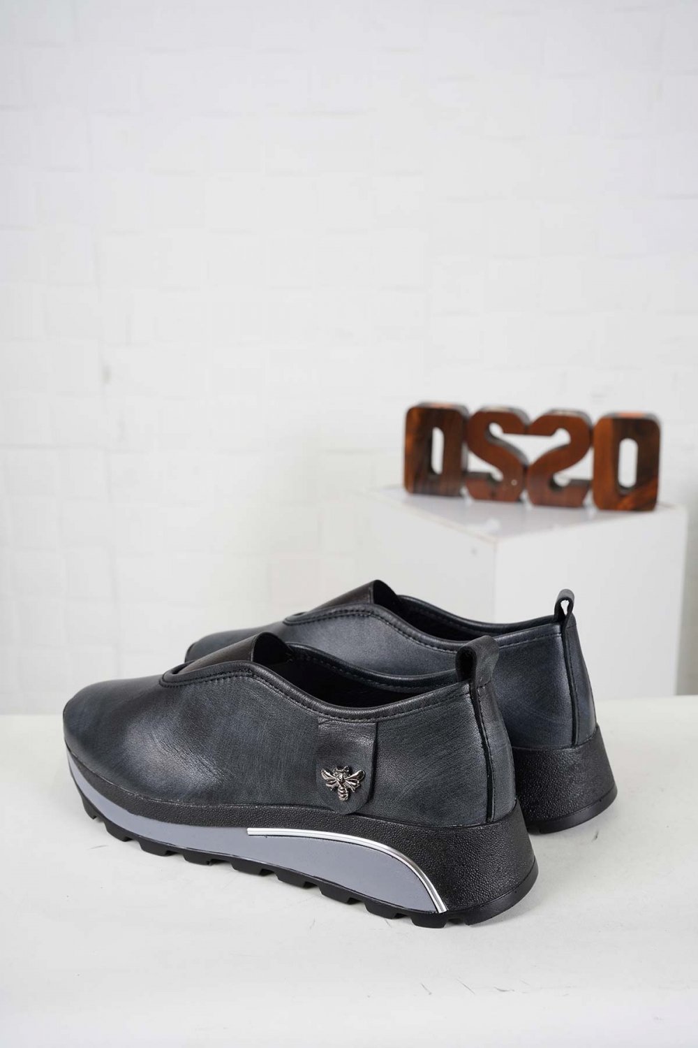 Hakiki Deri Siyah-Gümüş Kadın Casual Ayakkabı 261186101