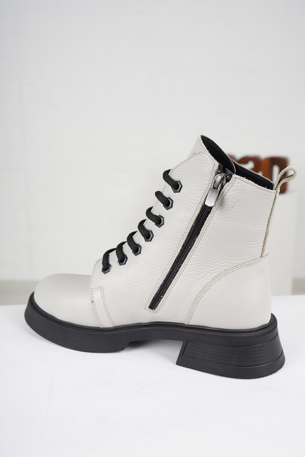 Hakiki Deri Gri Floter Kadın Kısa Bot 222172203