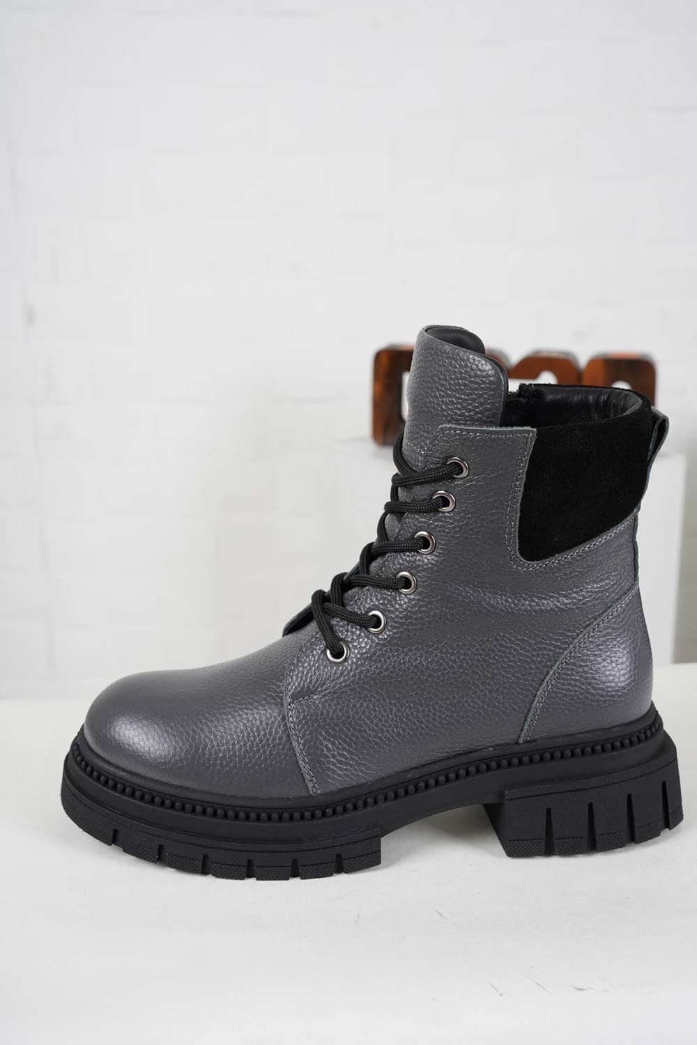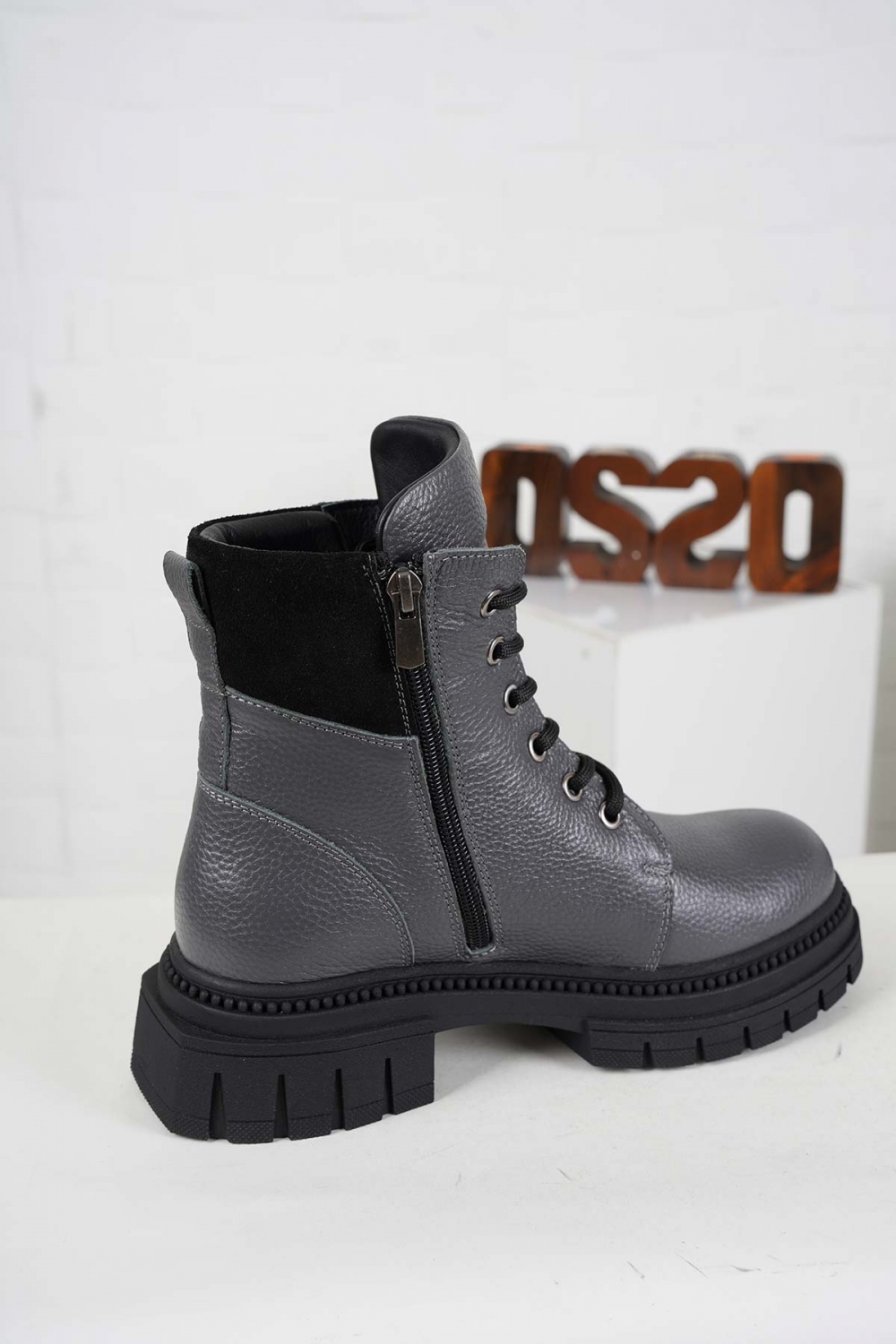 Hakiki Deri Gri Floter-Siyah Süet Kadın Postal Bot 242189202