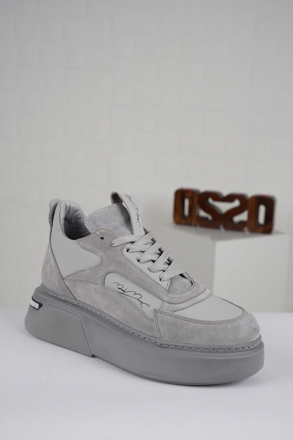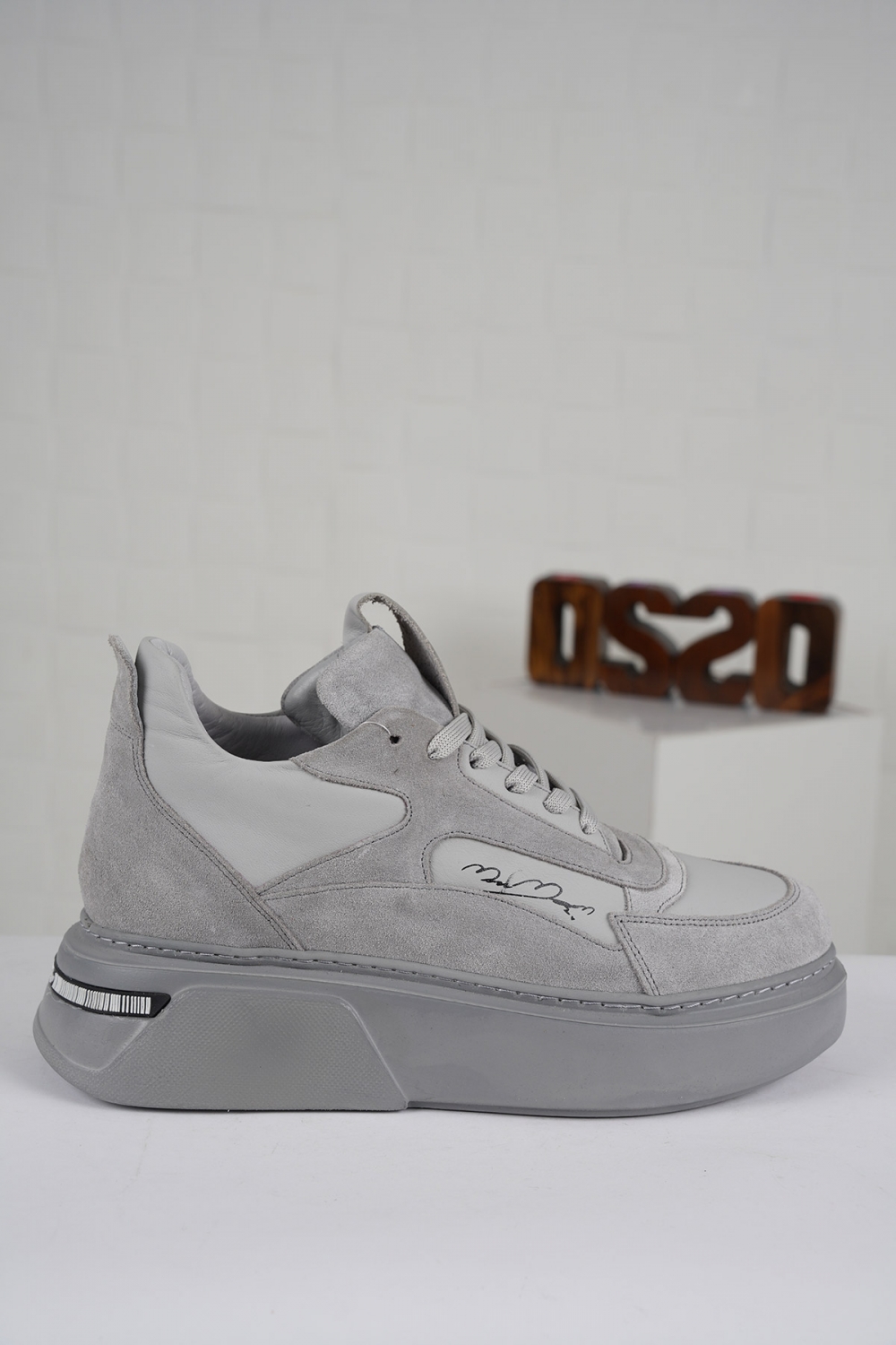 Hakiki Deri Gri-Gri Süet Kadın Sneaker Ayakkabı 222114107