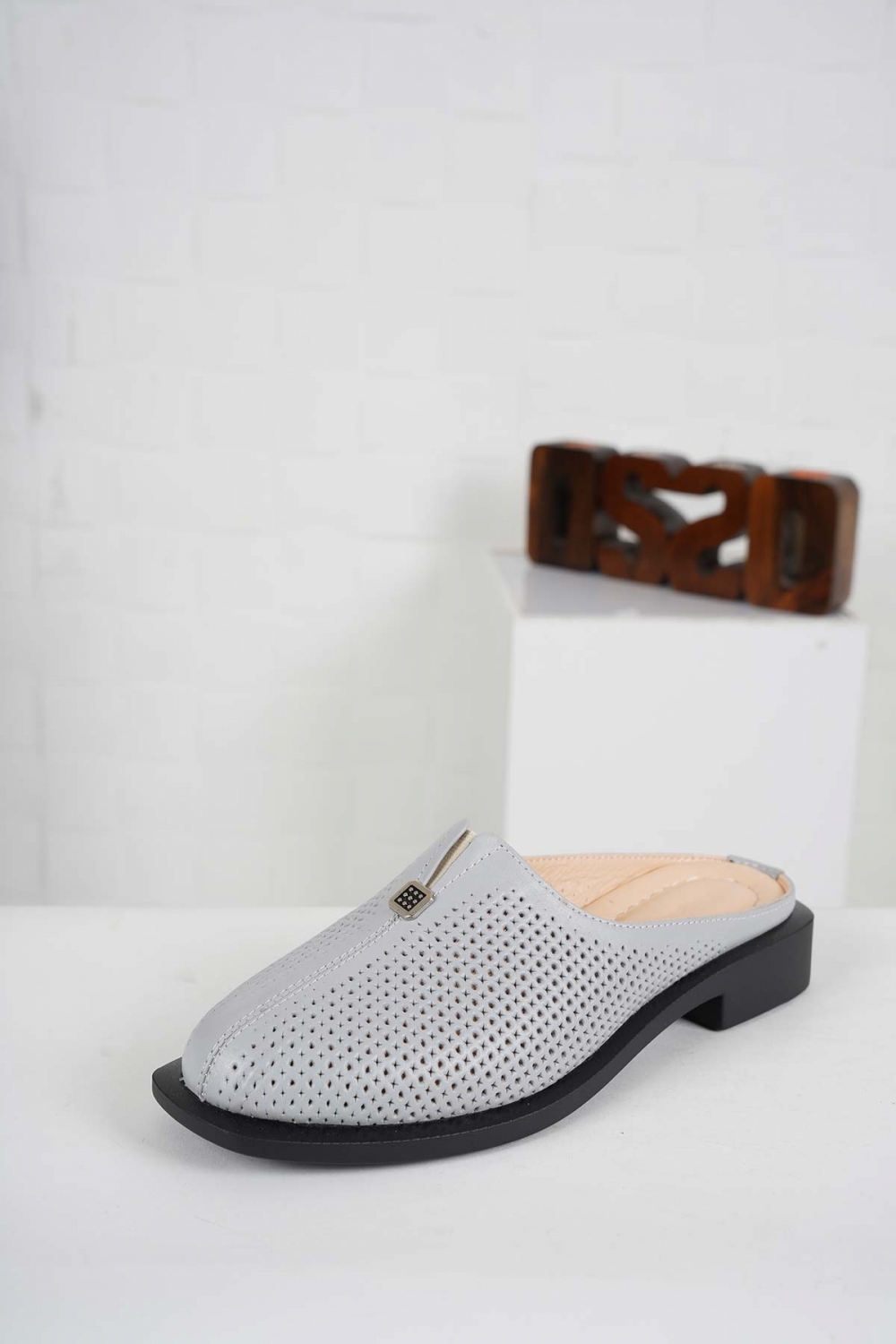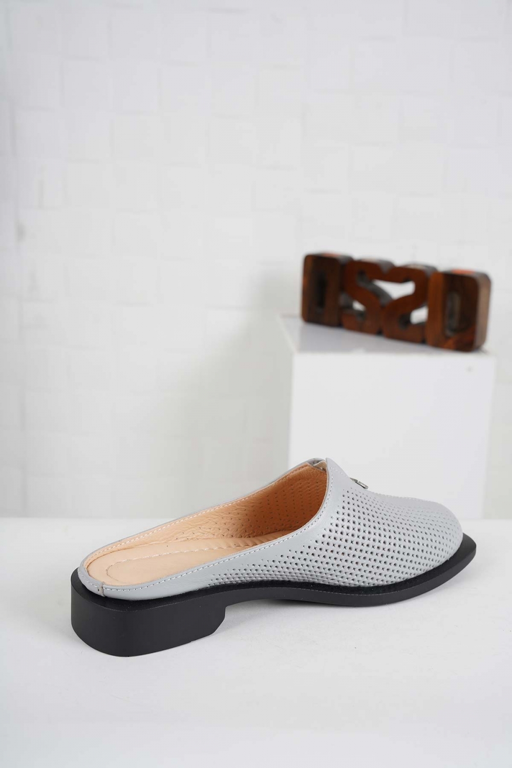 Hakiki Deri Gri Kadın Alçak Topuklu Sabo 241189703