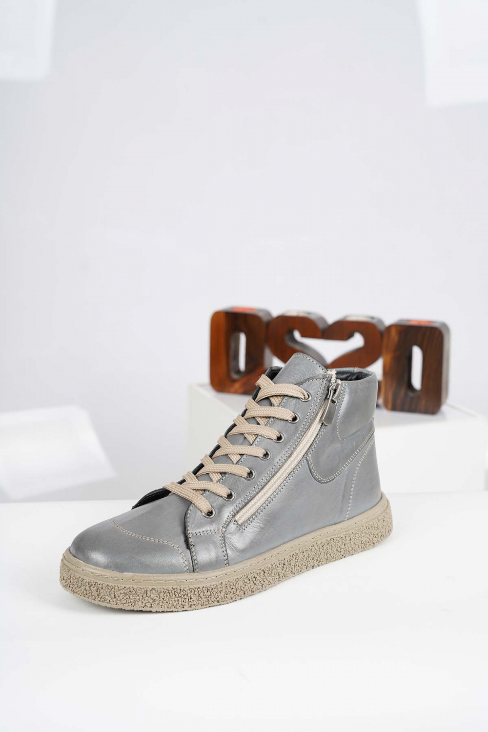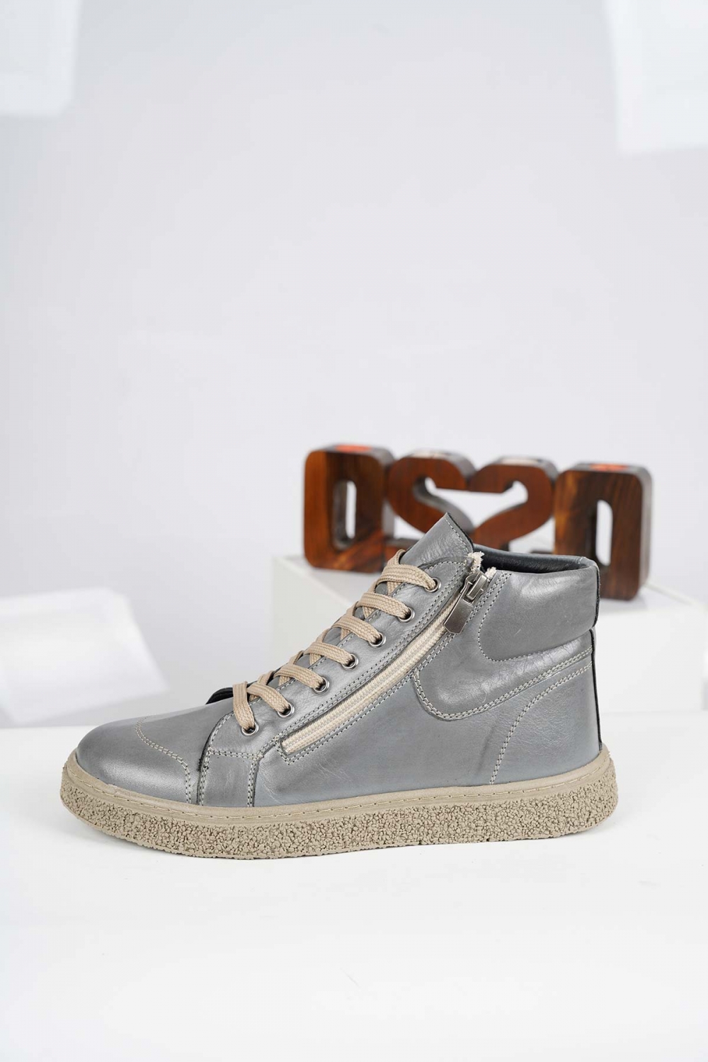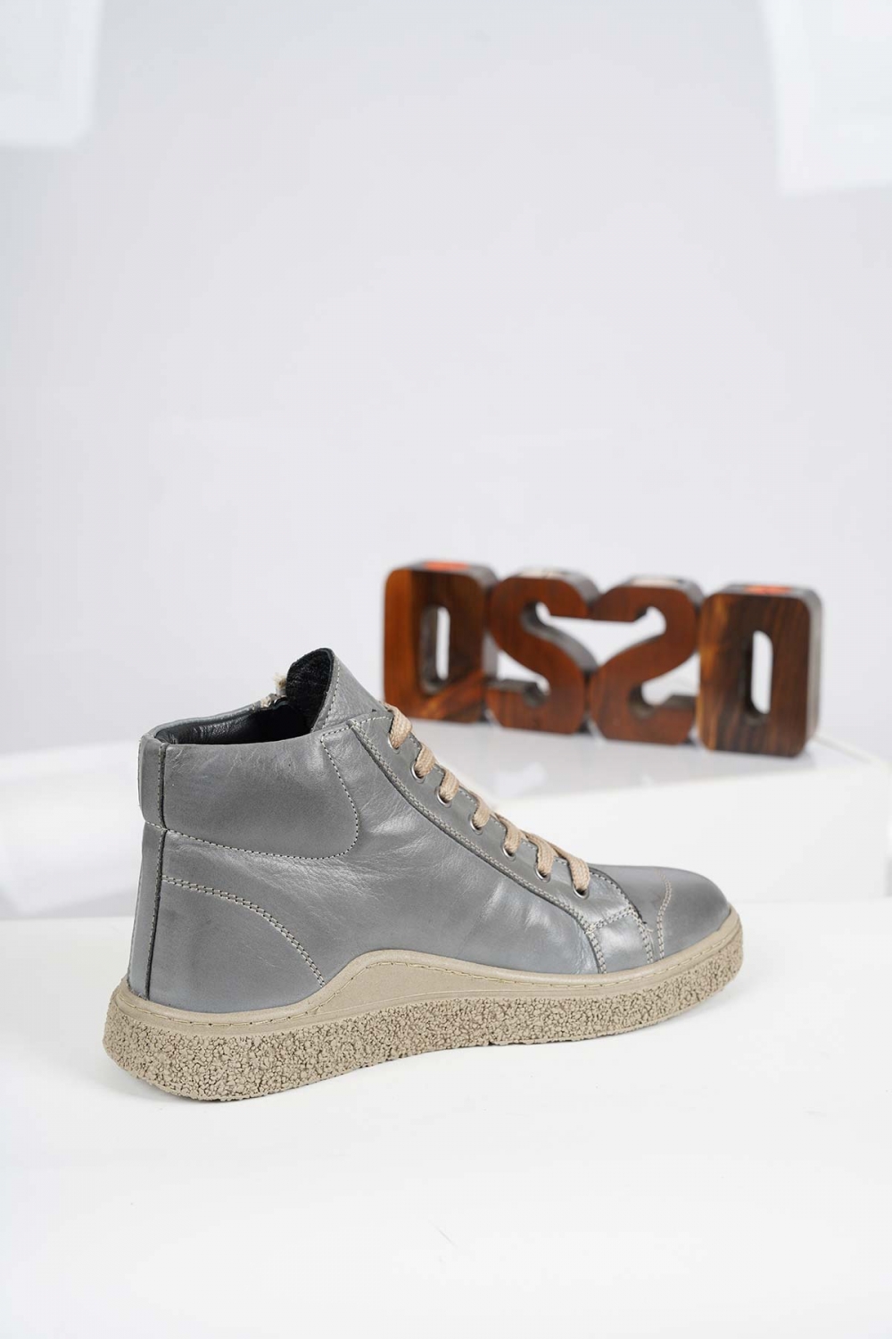 Hakiki Deri Gri Kadın Casual Bot 232220201