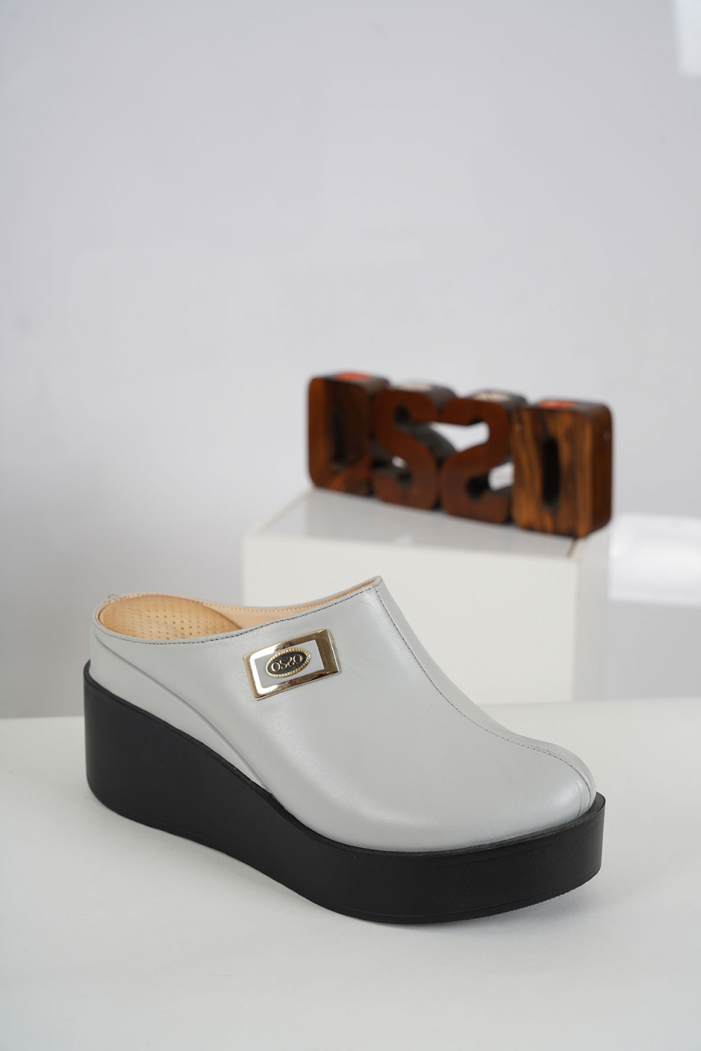 Hakiki Deri Gri Kadın Dolgu Topuklu Sabo 231229701