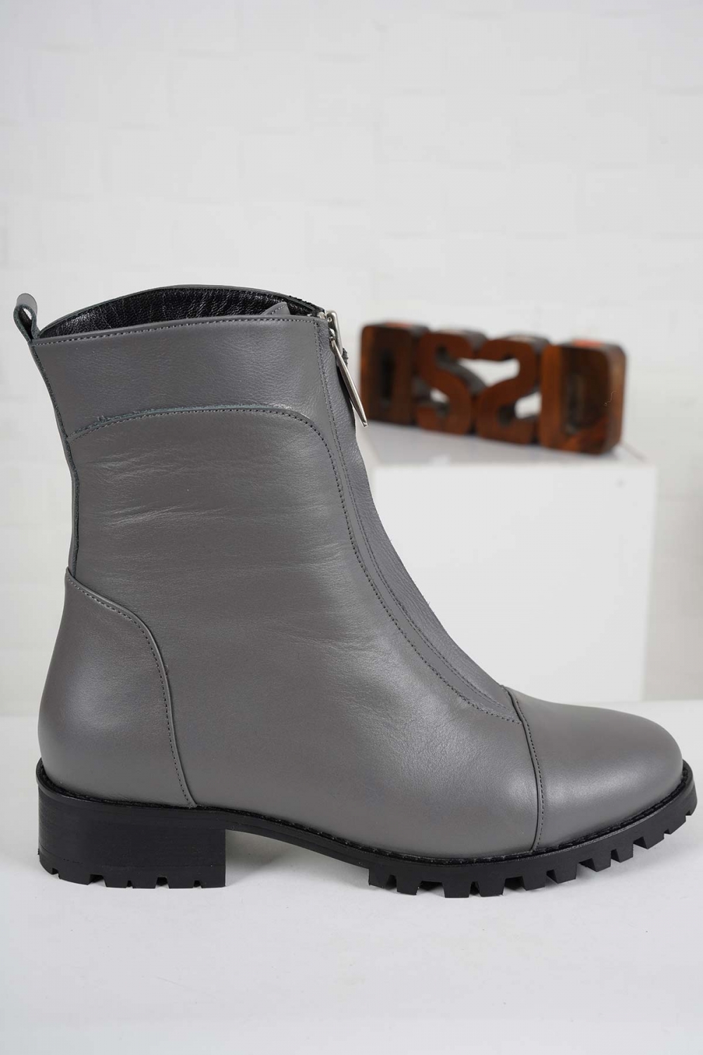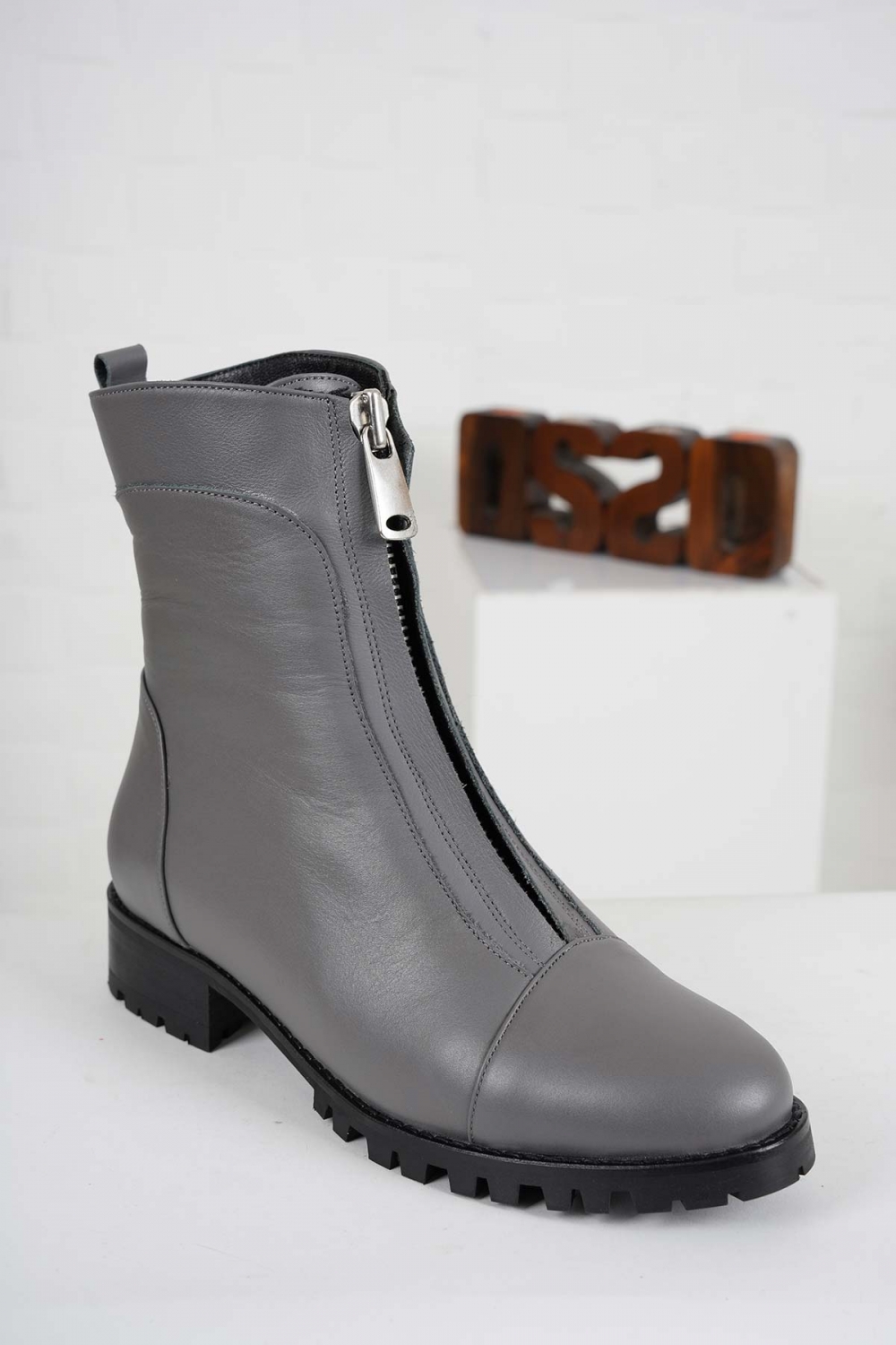 Hakiki Deri Gri Kadın Düz Bot 212127228