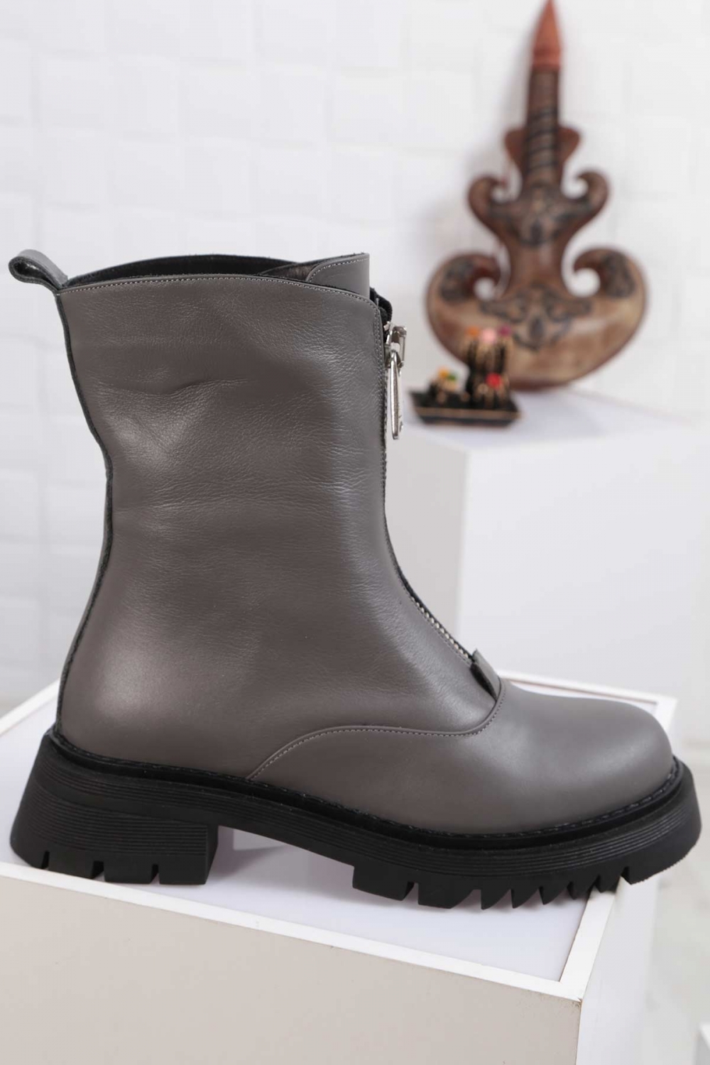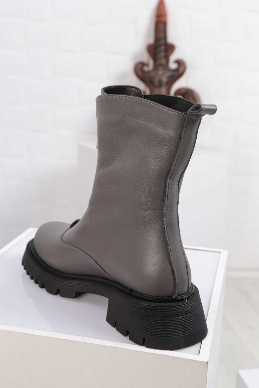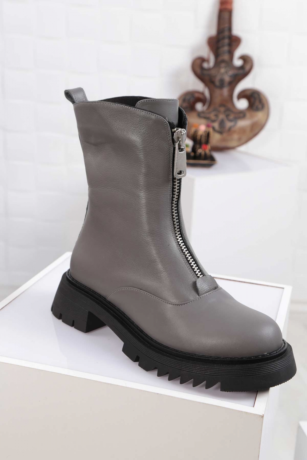 Hakiki Deri Gri Kadın Postal Bot 212127204