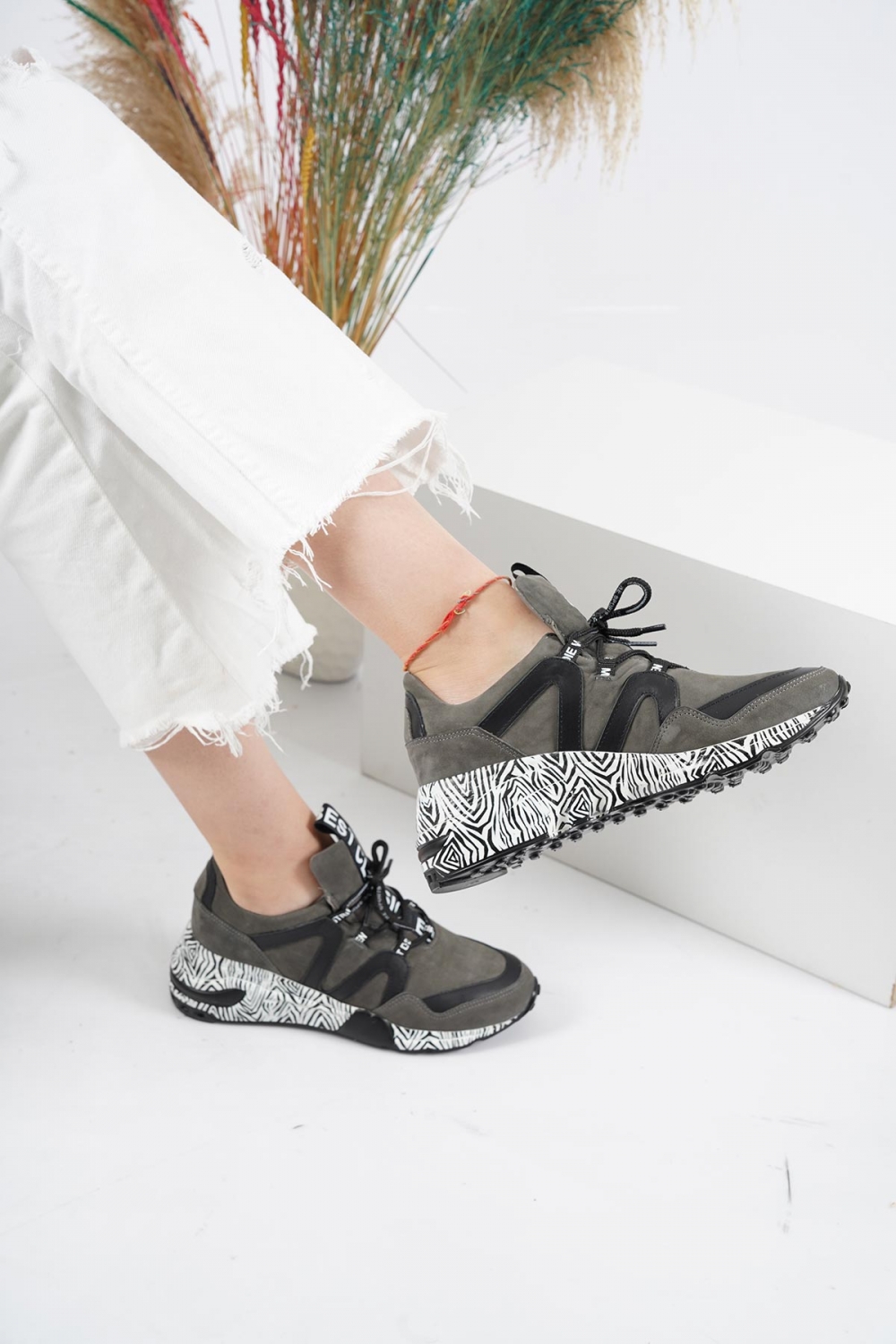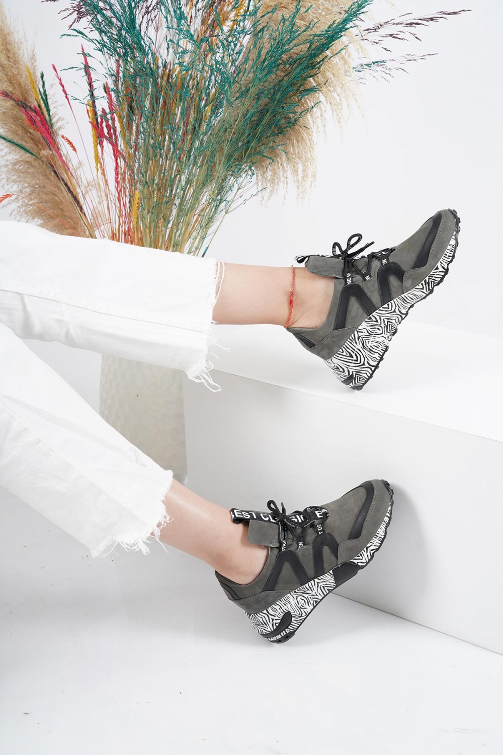Hakiki Deri Gri Nubuk Kadın Sneaker Ayakkabı 202110105