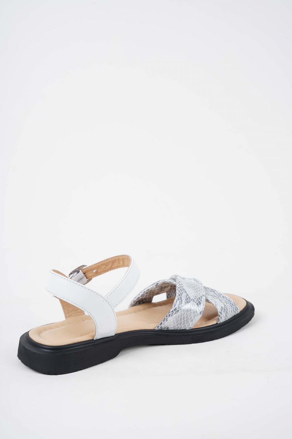 Hakiki Deri Gri Piton-Beyaz Kadın Düz Sandalet 251189506