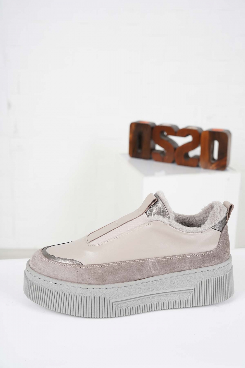 Hakiki Deri Bej Nubuk Kadın Sneaker Ayakkabı 252114101