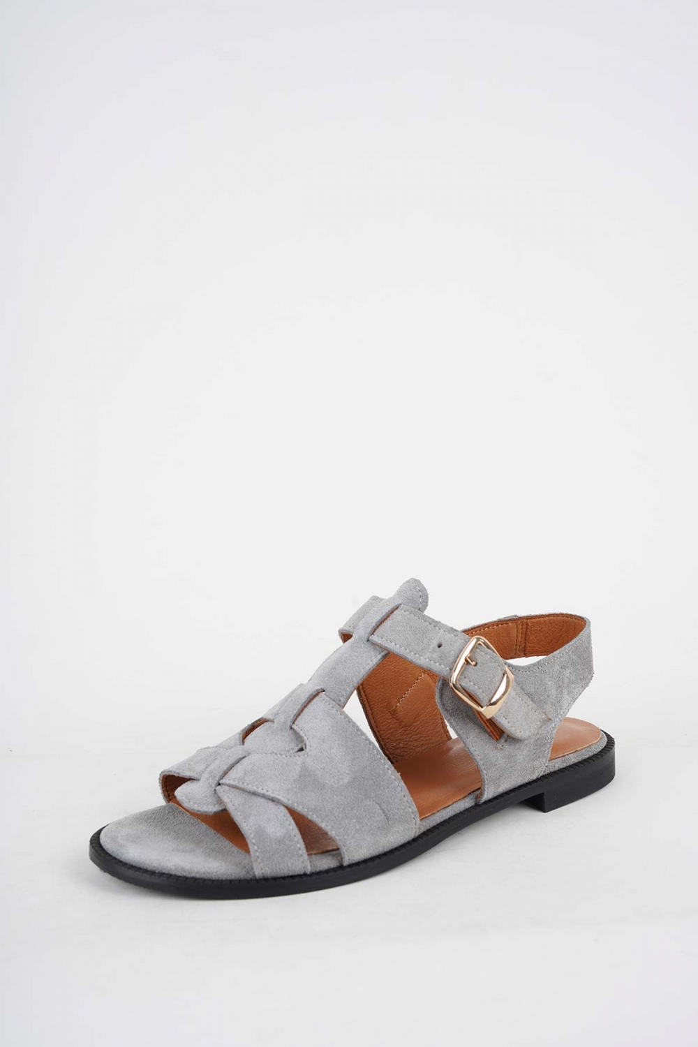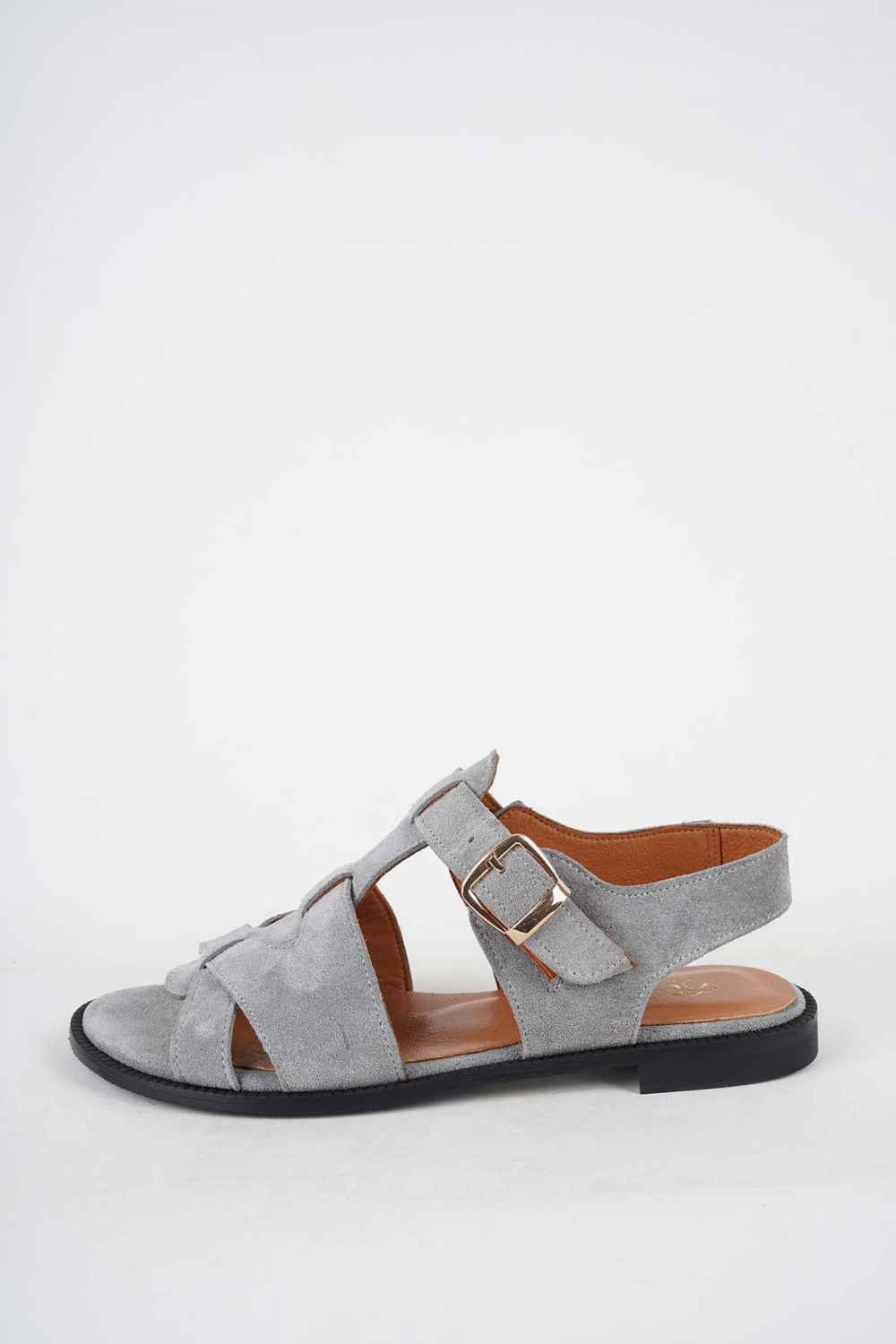 Hakiki Deri Gri Süet Kadın Düz Sandalet 251127501