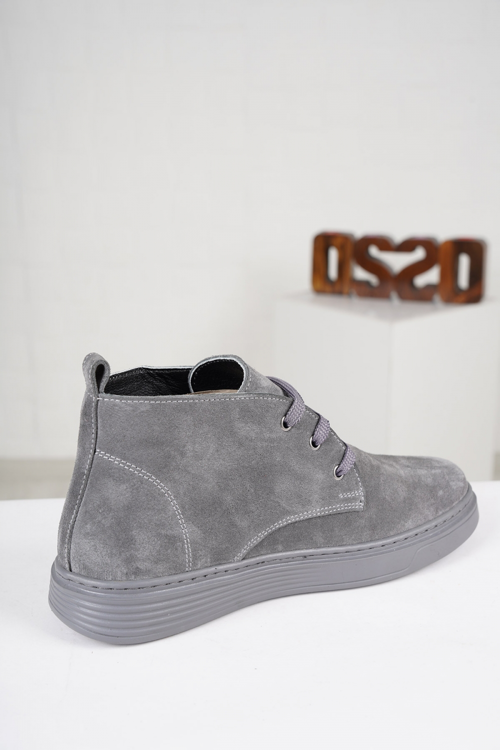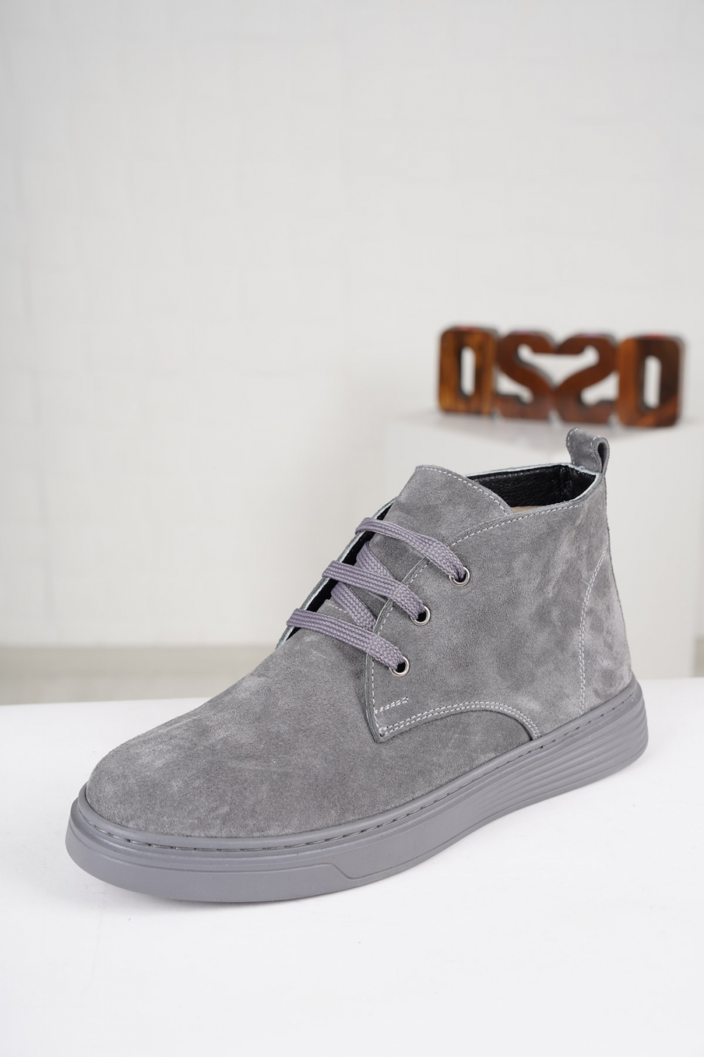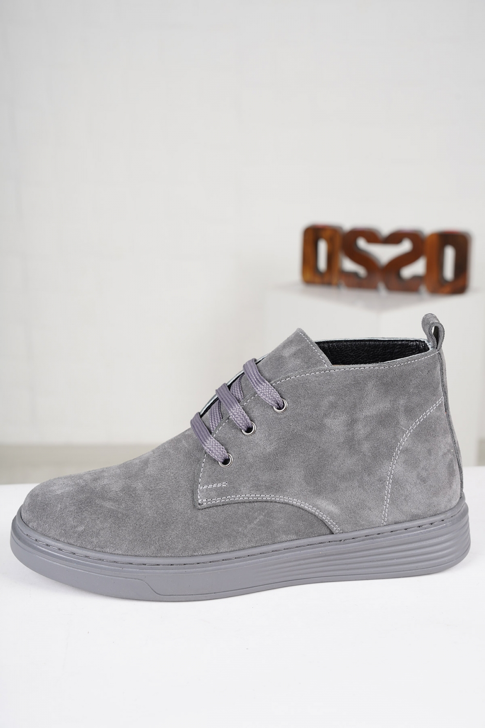 Hakiki Deri Gri Süet Kadın Kısa Bot 222108201