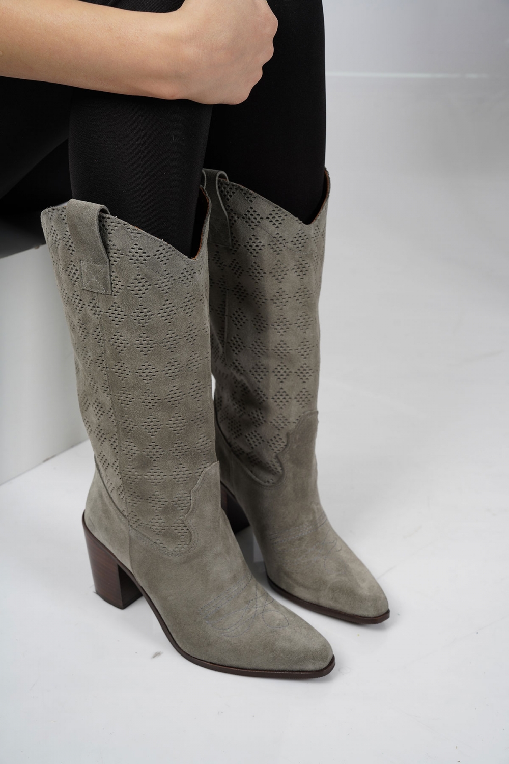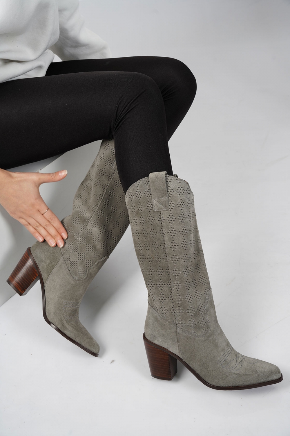Hakiki Deri Gri Süet Kadın Kovboy Çizme 231110301