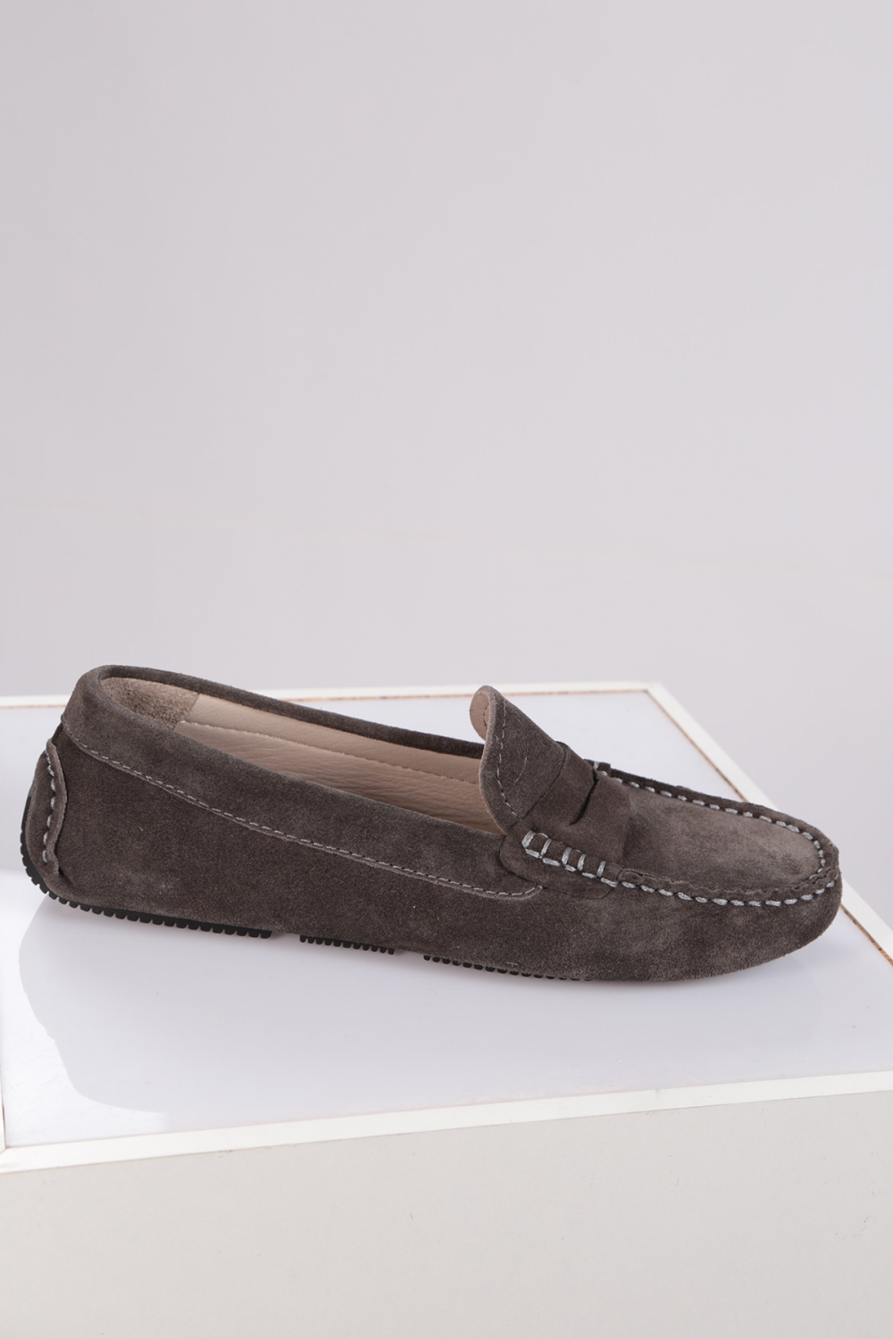 Hakiki Deri Gri Süet Kadın Makosen Ayakkabı 221209106