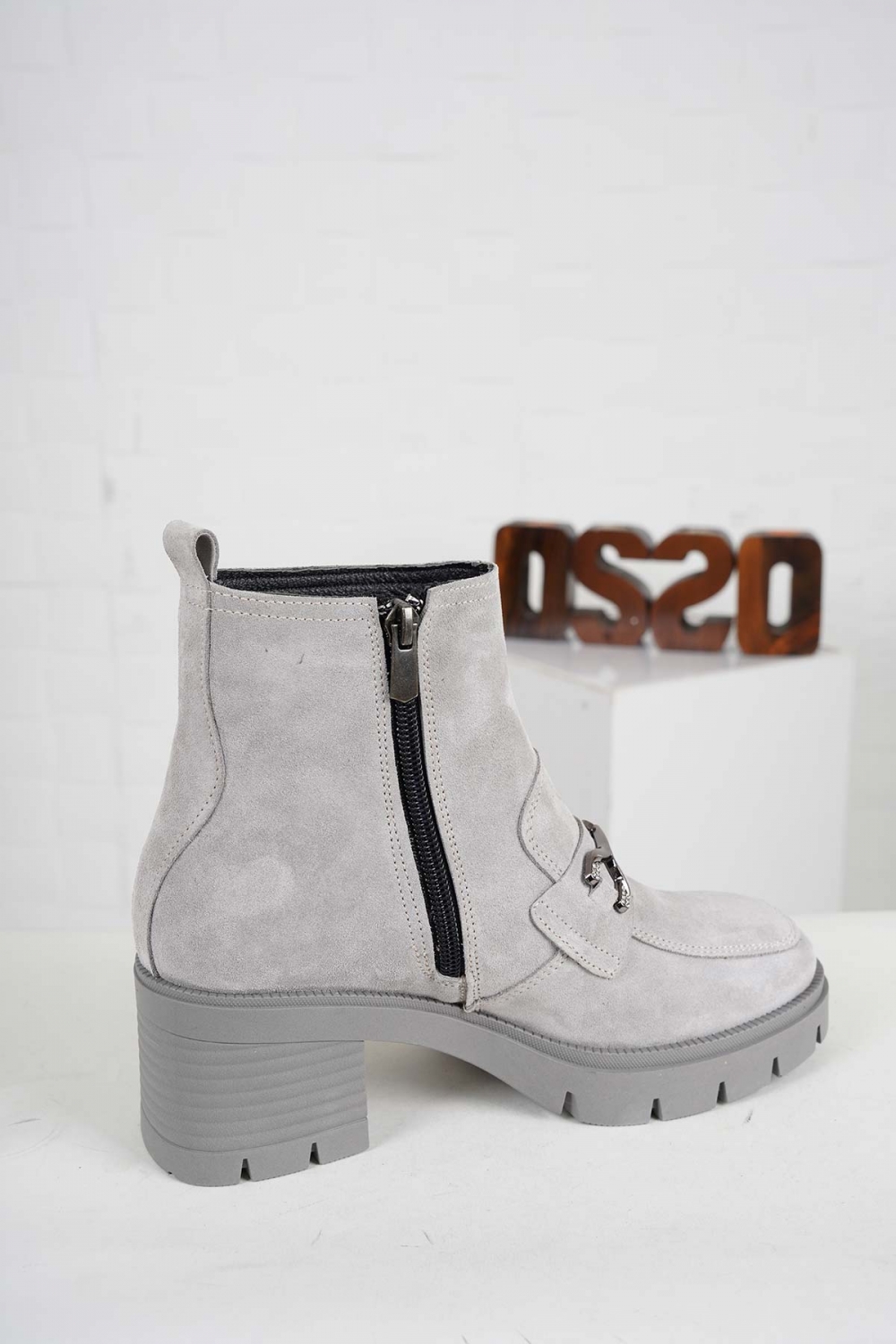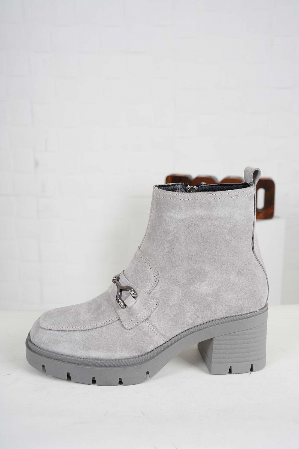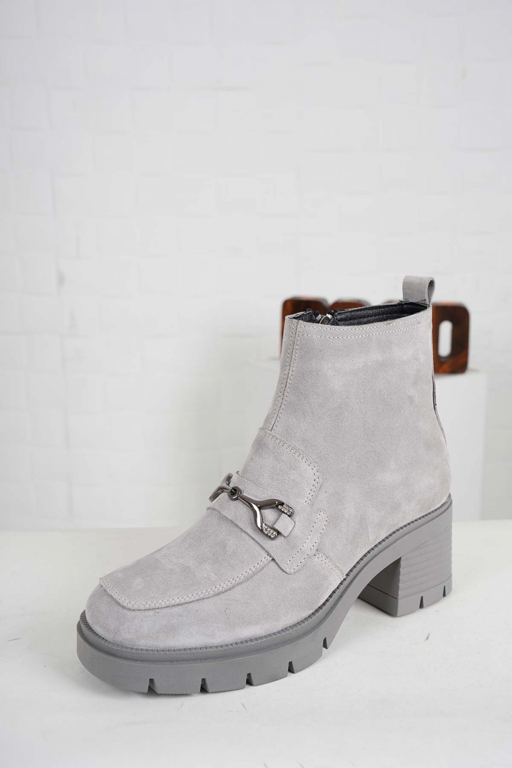 Hakiki Deri Gri Süet Kadın Topuklu Bot 242108201