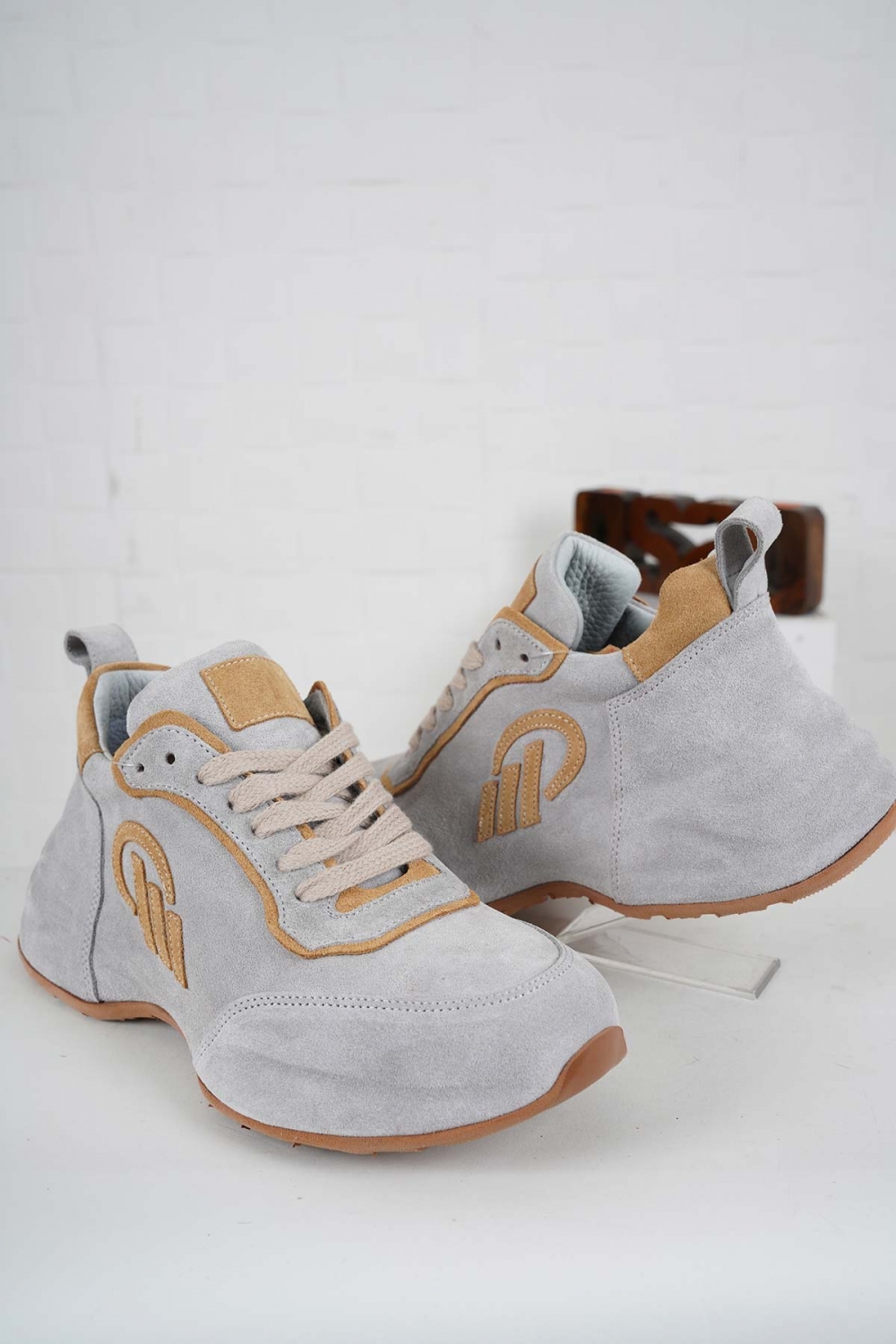 Hakiki Deri Gri Süet-Tarçın Süet Kadın Sneaker Ayakkabı 241114101
