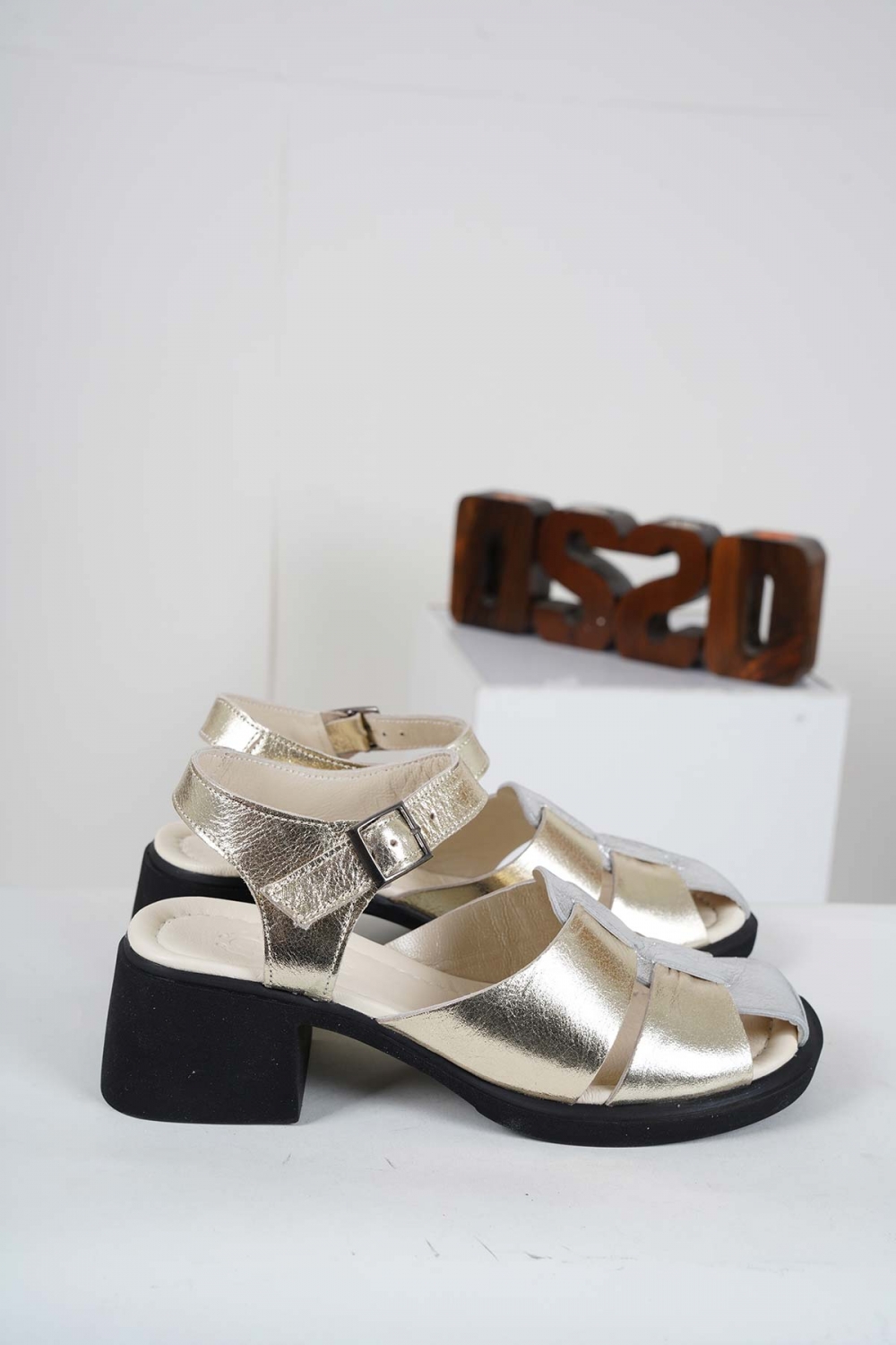 Hakiki Deri Gümüş-Altın Kadın Topuklu Sandalet 241225501