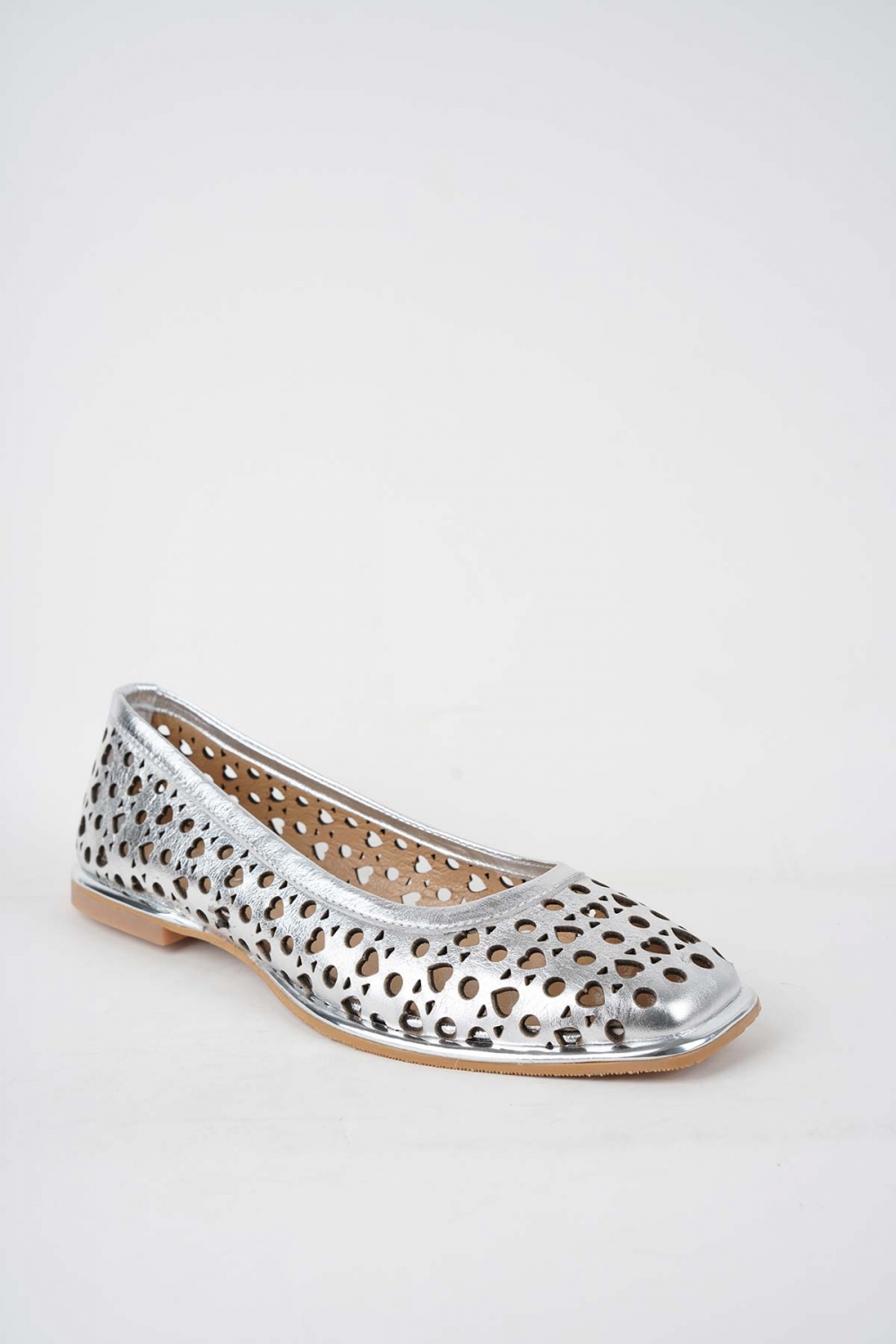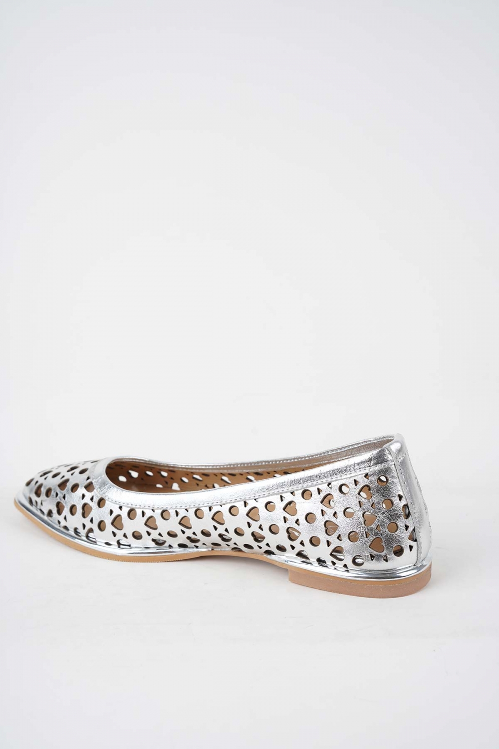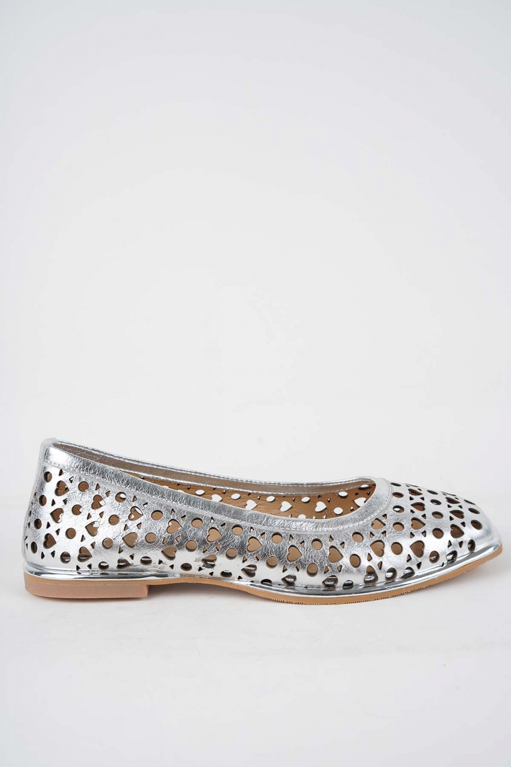 Hakiki Deri Gümüş Kadın Babet Ayakkabı 251135103