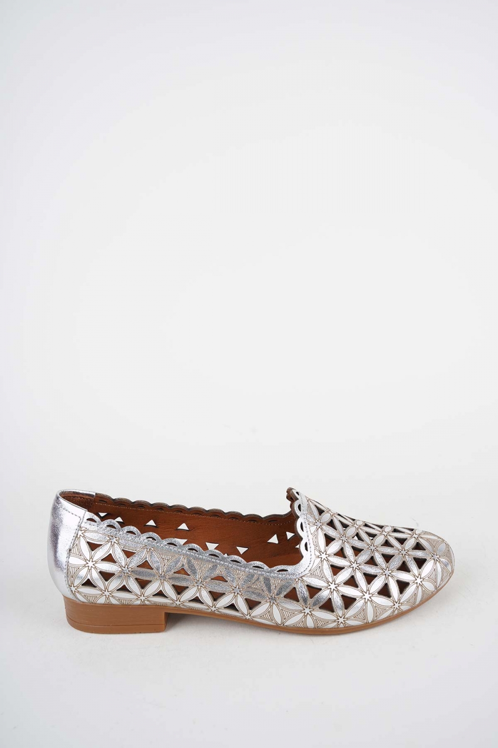 Hakiki Deri Gümüş Kadın Babet Ayakkabı 261214105