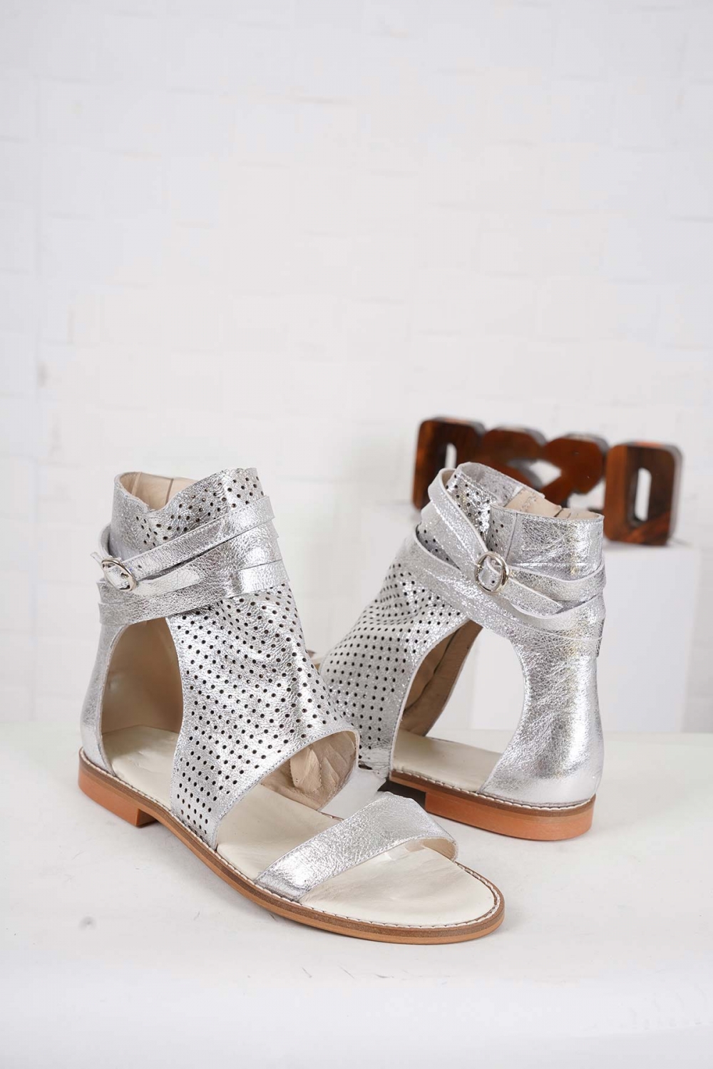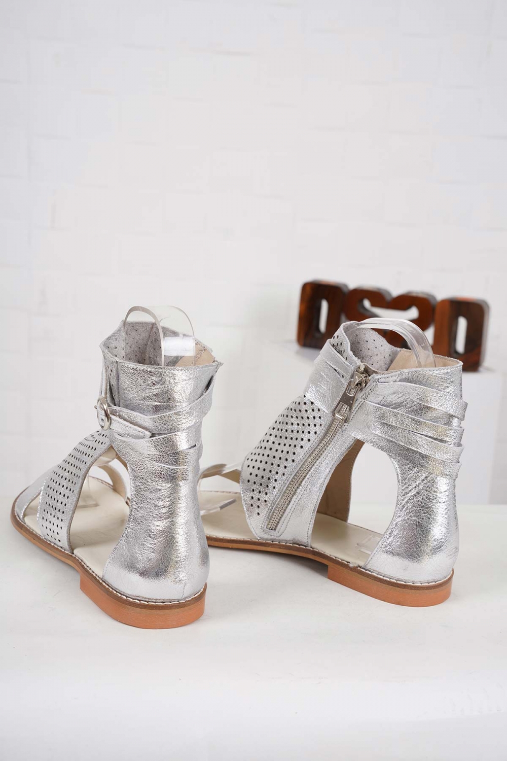 Hakiki Deri Gümüş Kadın Bilekten Bağlı Sandalet 241127501