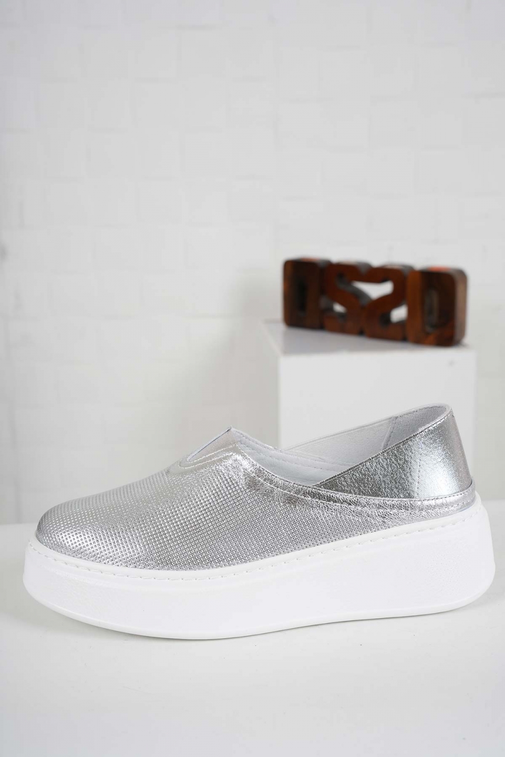 Hakiki Deri Gümüş Kadın Casual Ayakkabı 241225103