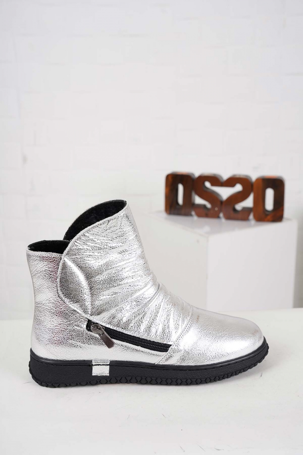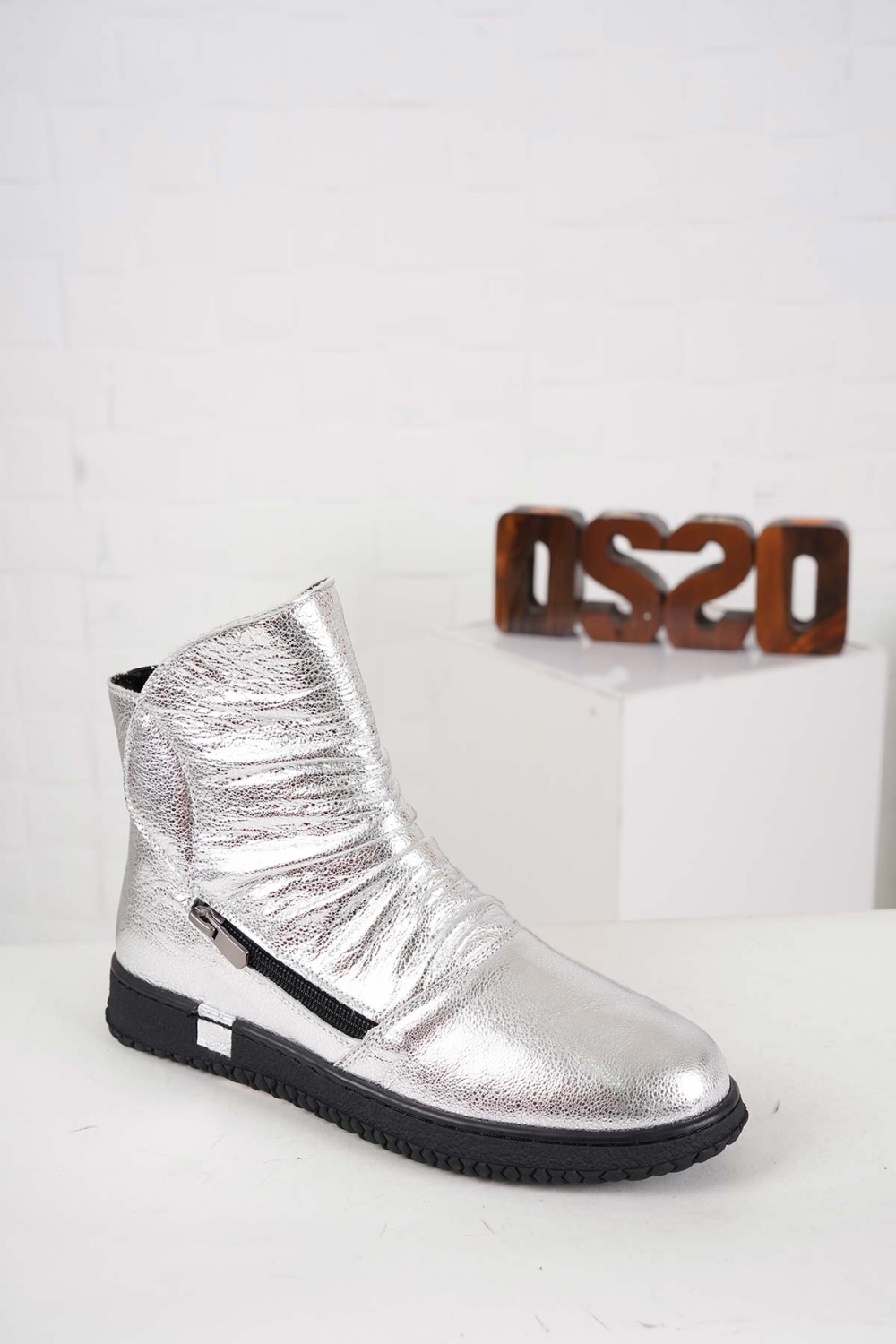 Hakiki Deri Gümüş Kadın Casual Bot 242186204