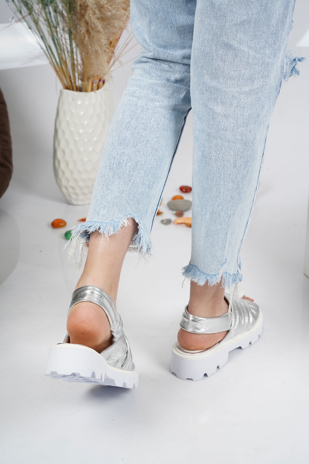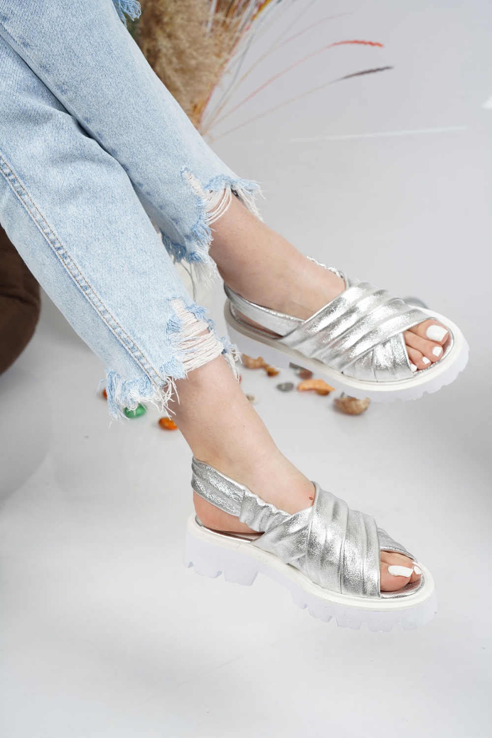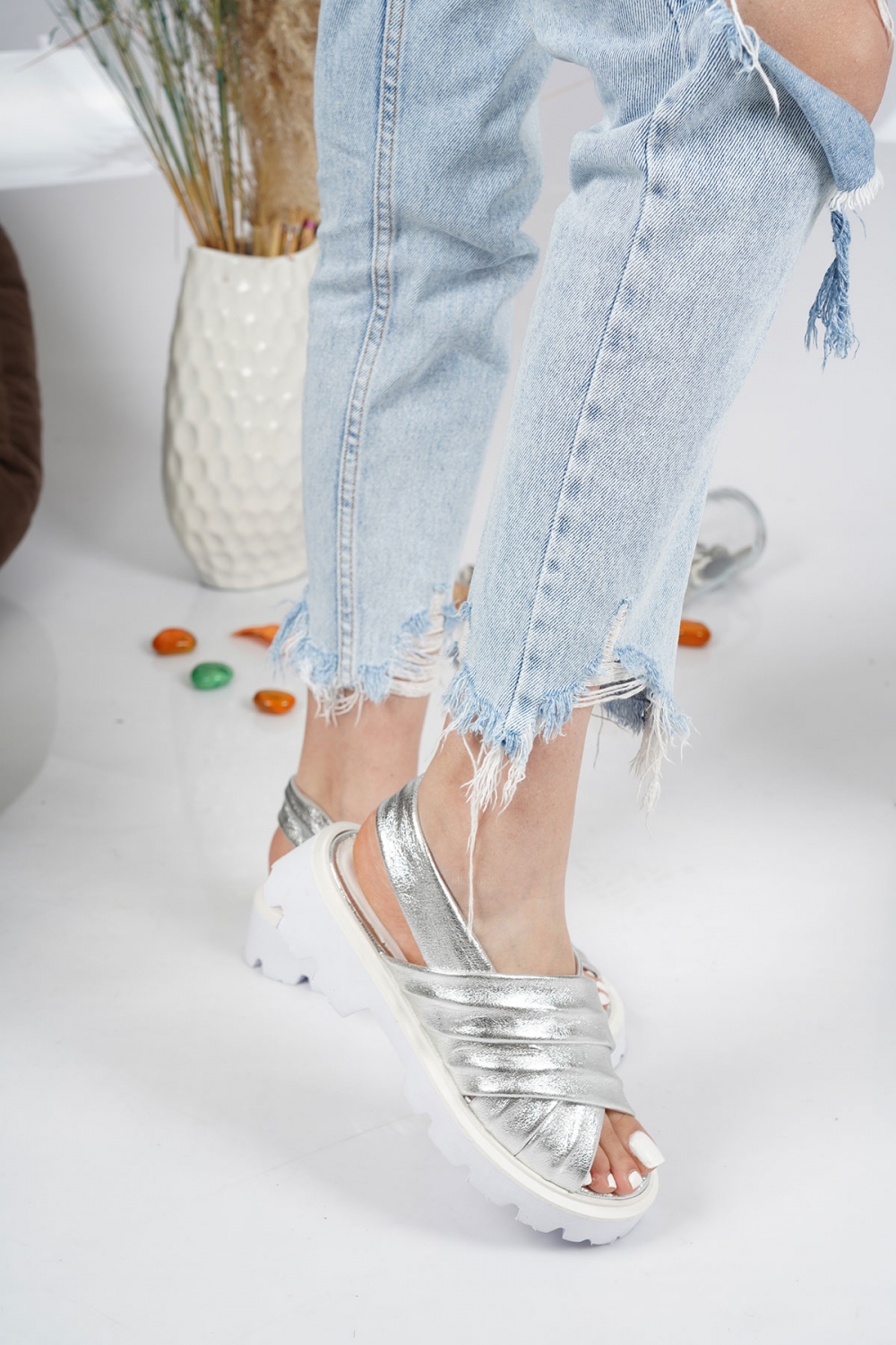 Hakiki Deri Gümüş Kadın Casual Terlik 231127504