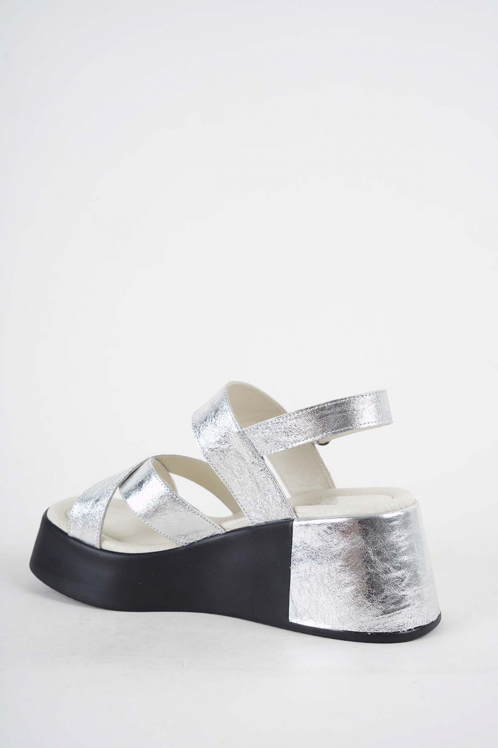 Hakiki Deri Gümüş Kadın Dolgu Topuklu Sandalet 251141507