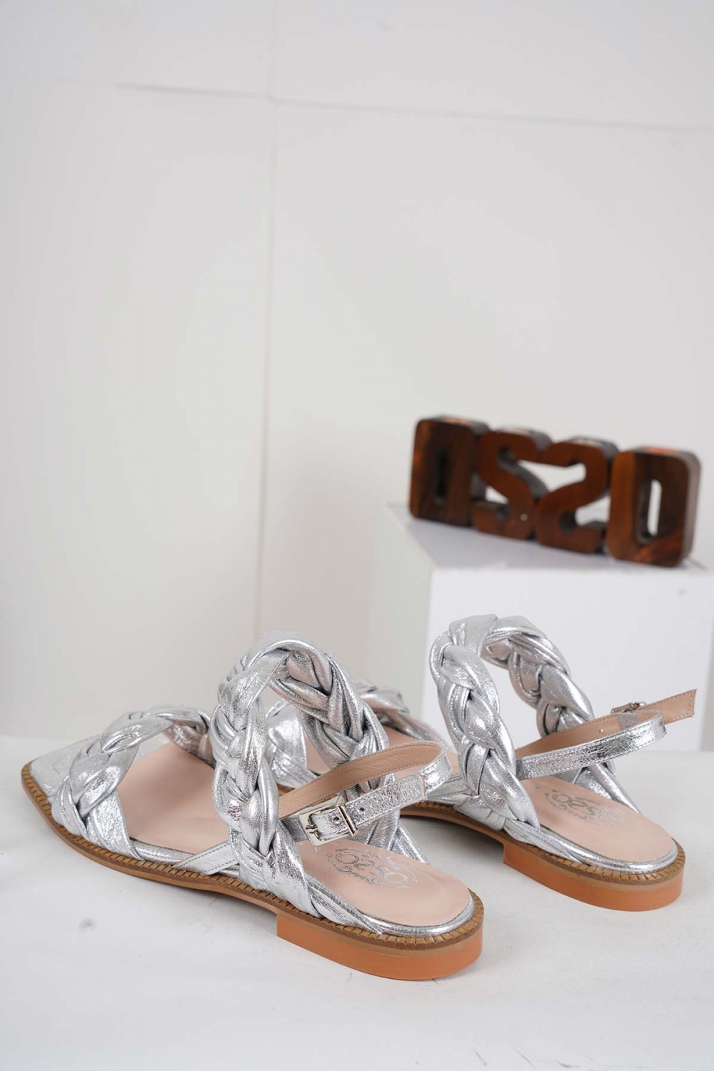 Hakiki Deri Gümüş Kadın Düz Sandalet 221127502