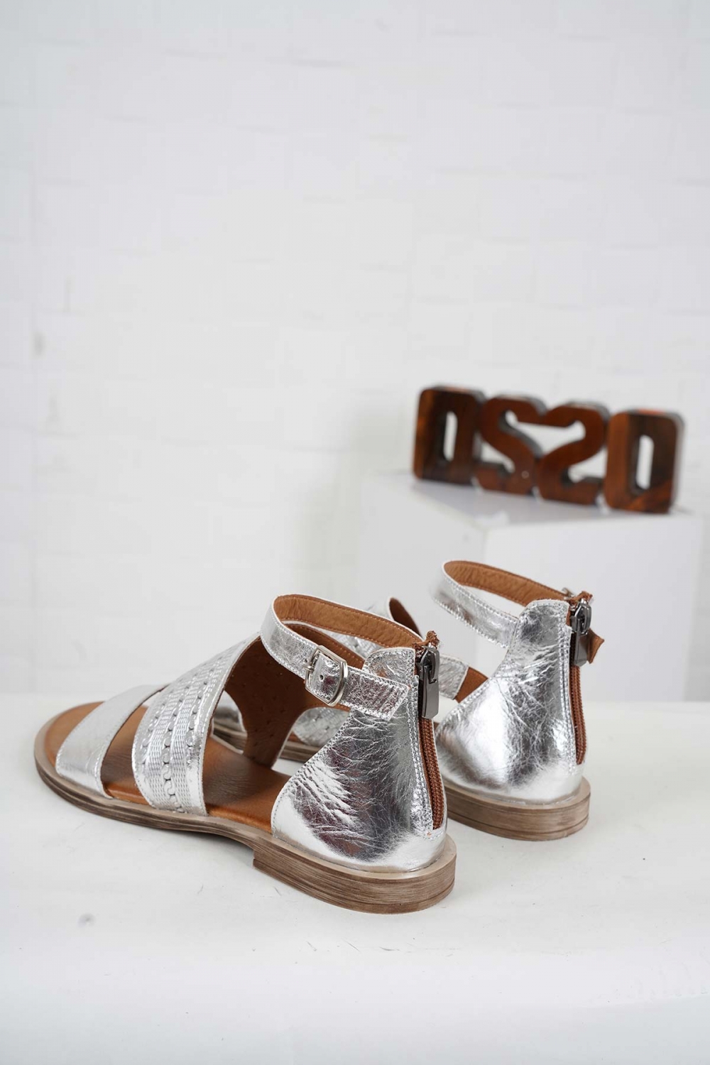 Hakiki Deri Gümüş Kadın Düz Sandalet 241126531