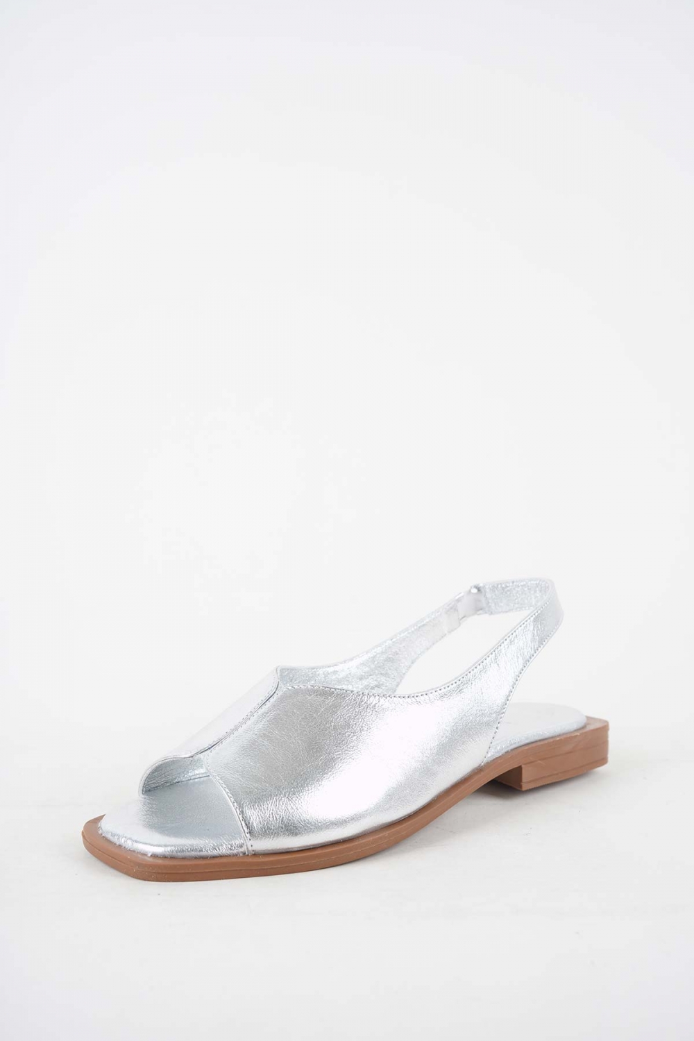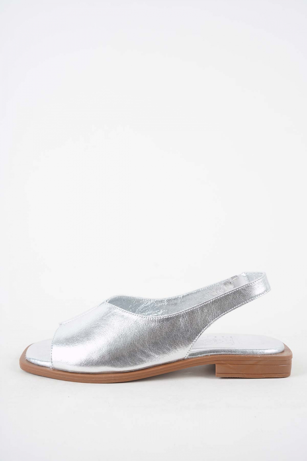 Hakiki Deri Gümüş Kadın Düz Sandalet 251103503