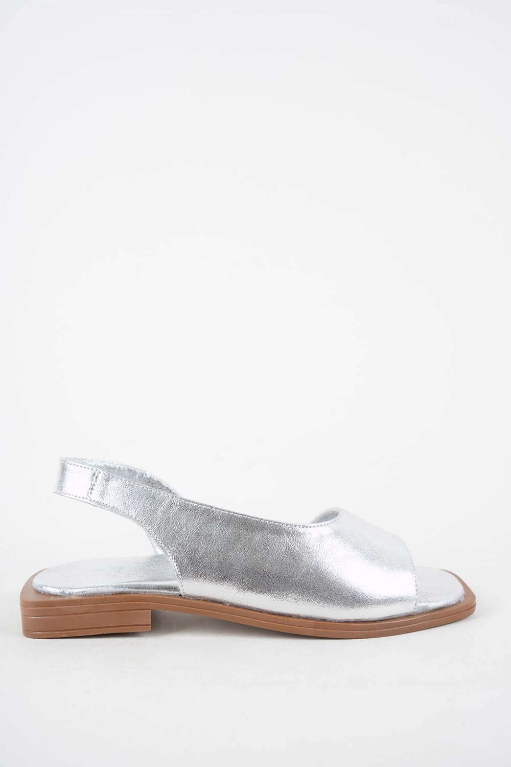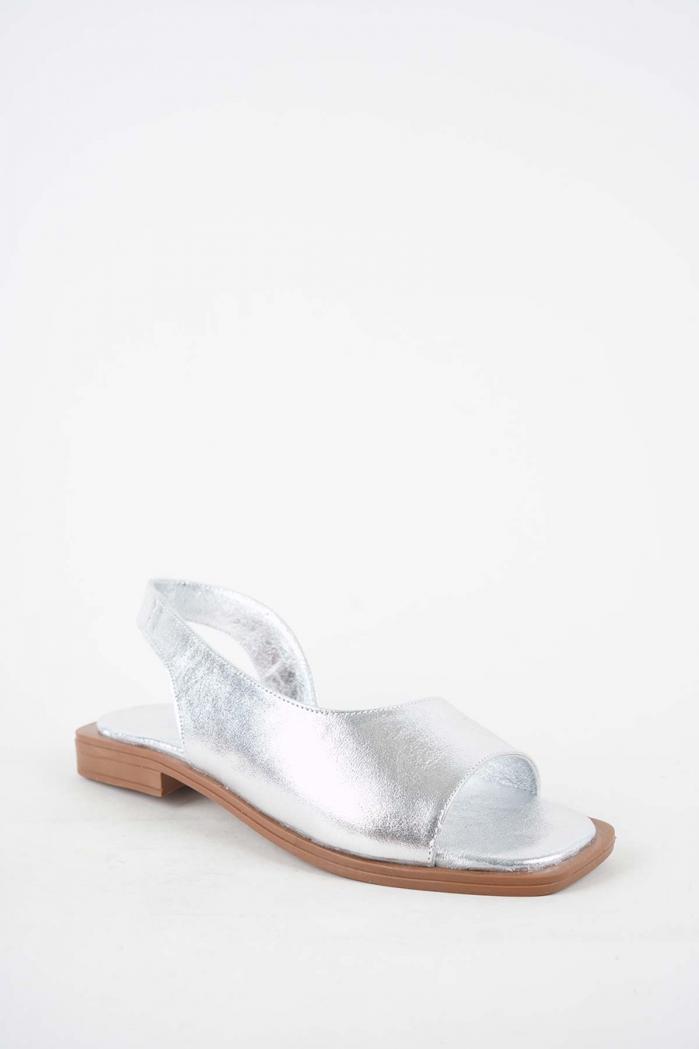 Hakiki Deri Gümüş Kadın Düz Sandalet 251103506