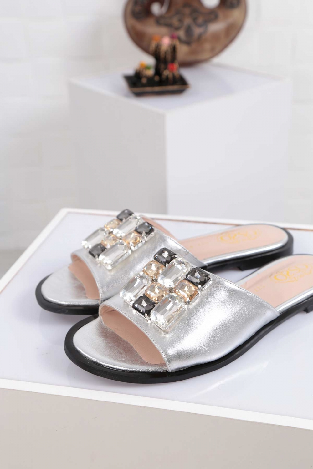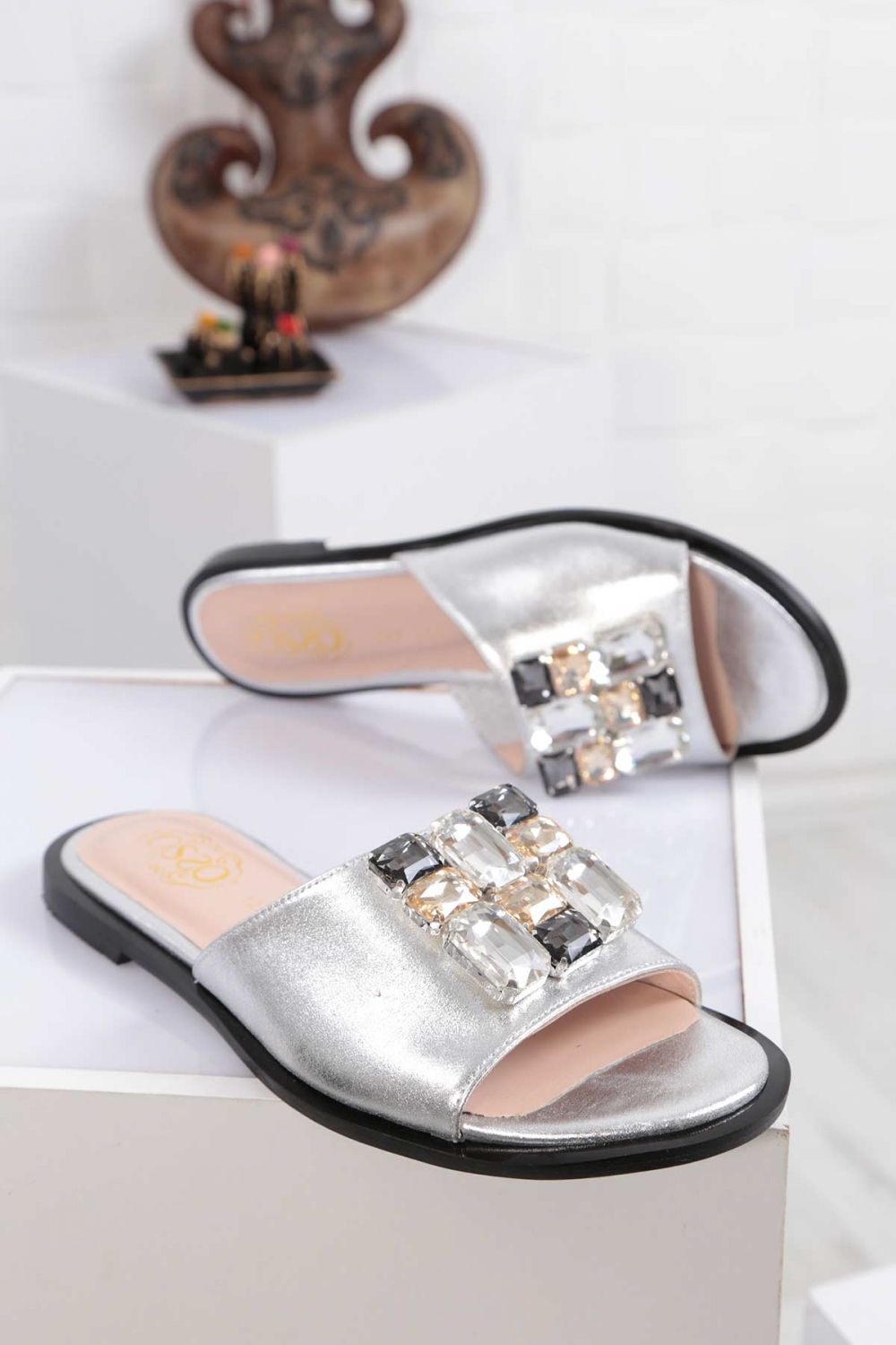Hakiki Deri Gümüş Kadın Düz Terlik 211127615