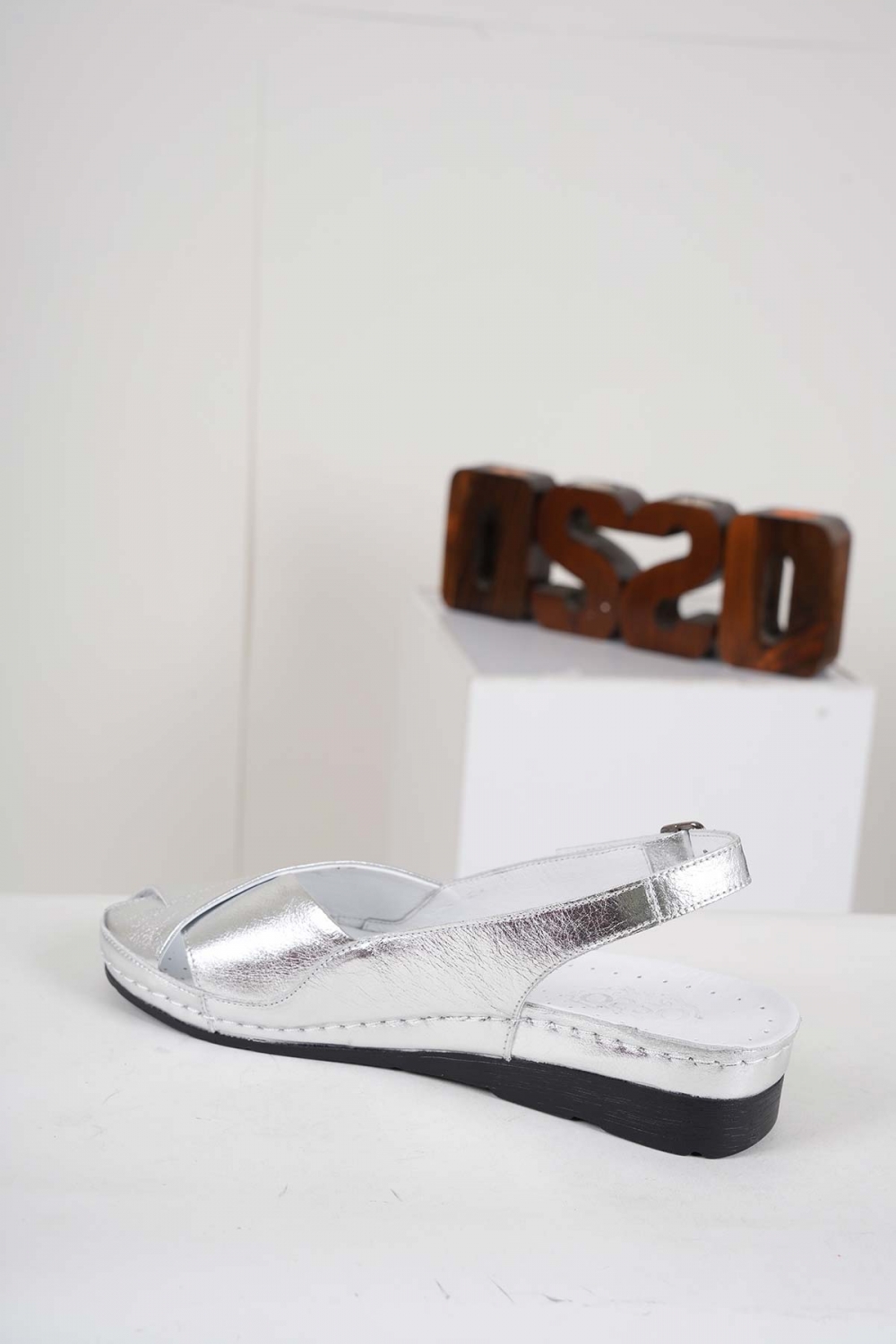 Hakiki Deri Gümüş Kadın Komfort Sandalet 241177504