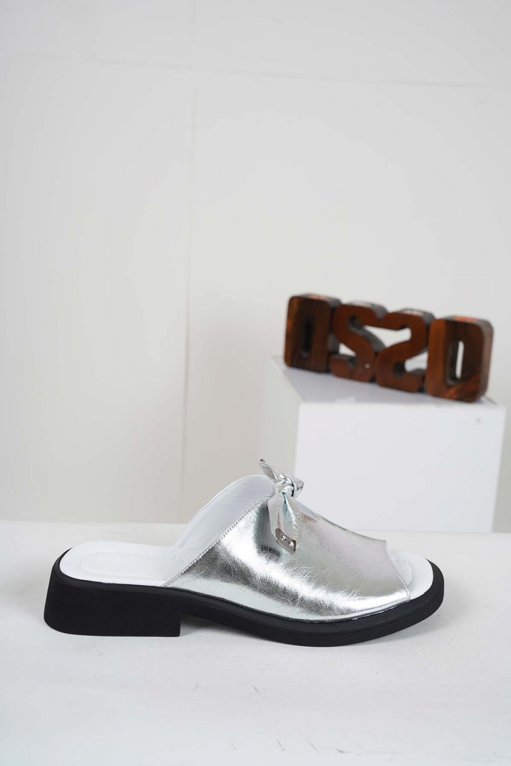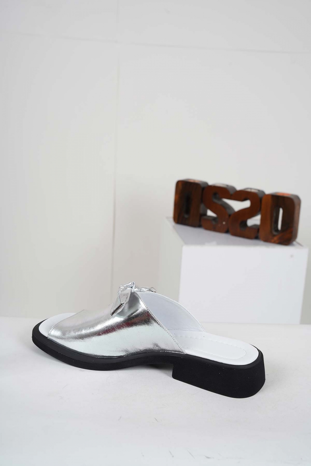 Hakiki Deri Gümüş Kadın Topuklu Terlik 241229614