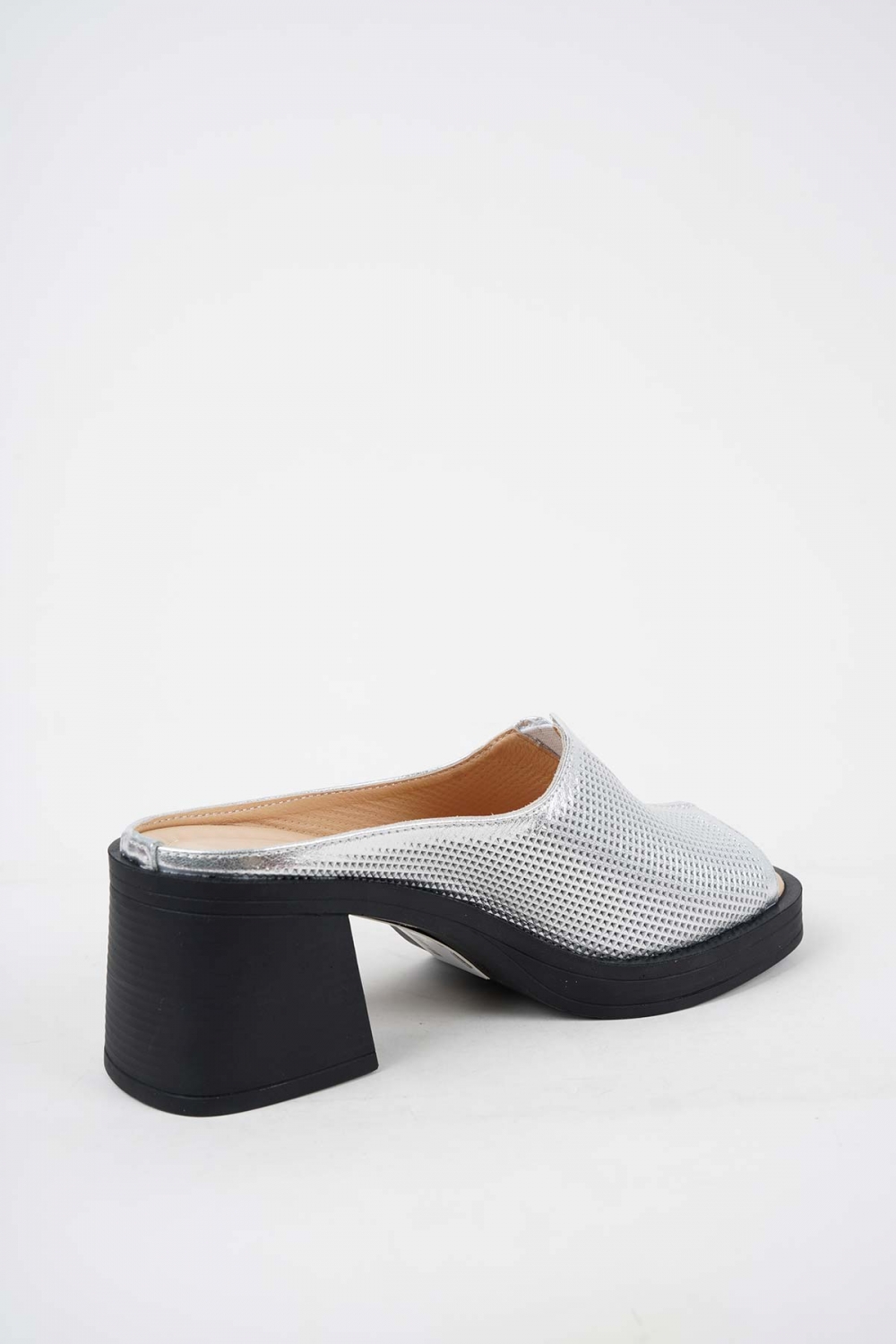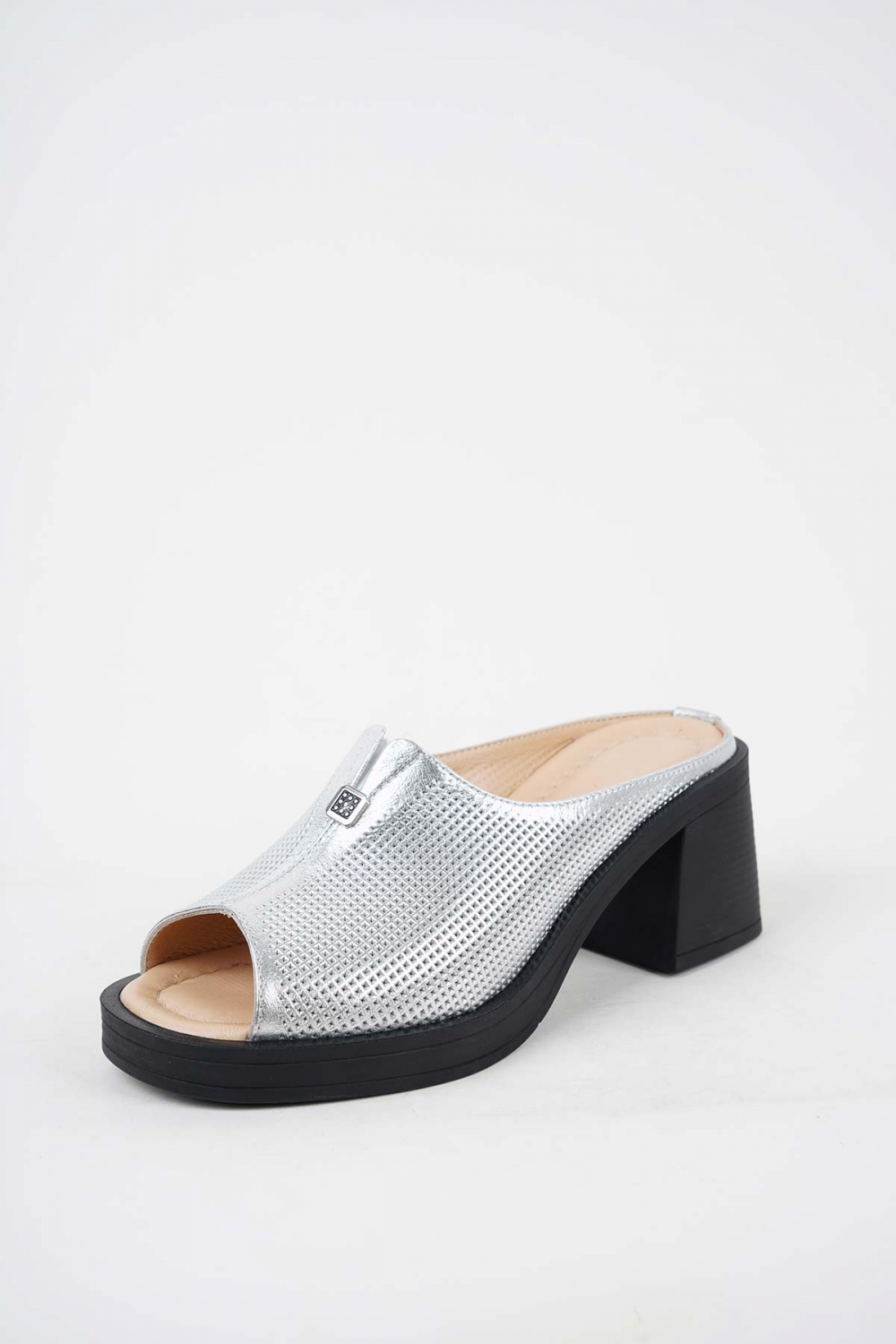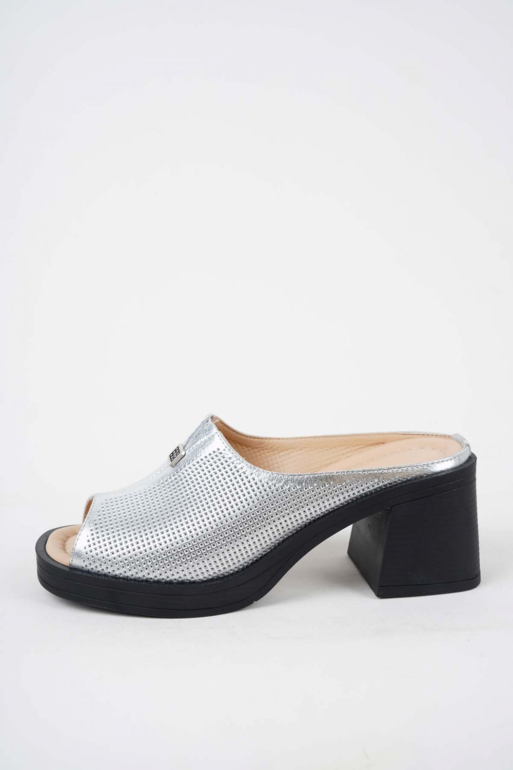 Hakiki Deri Gümüş Kadın Topuklu Terlik 251189606
