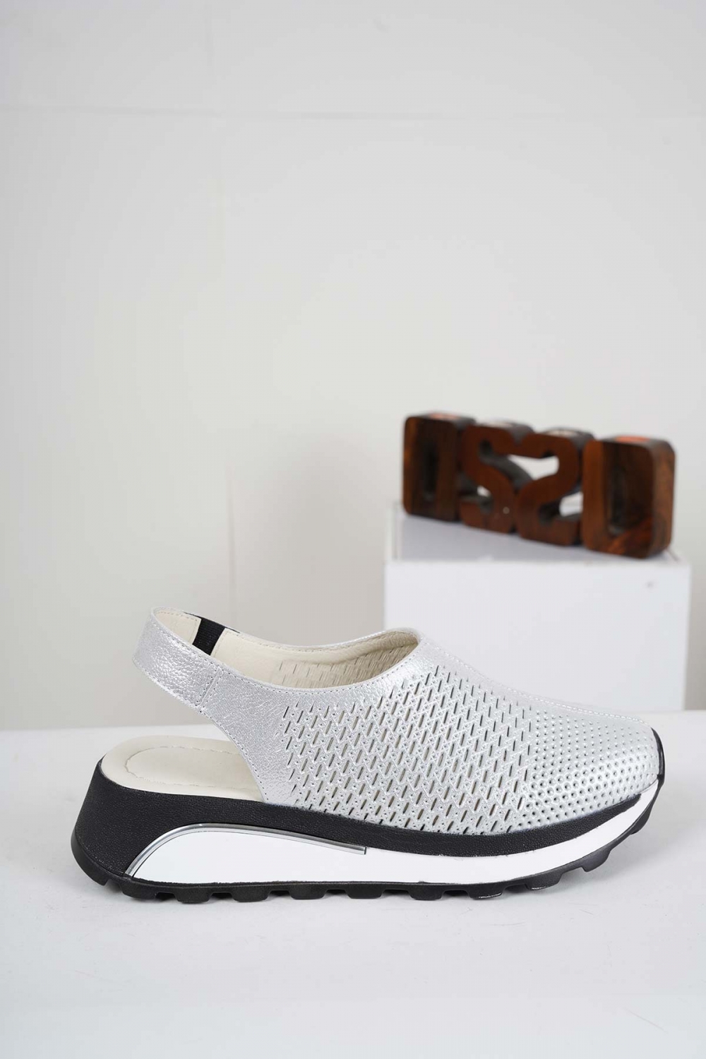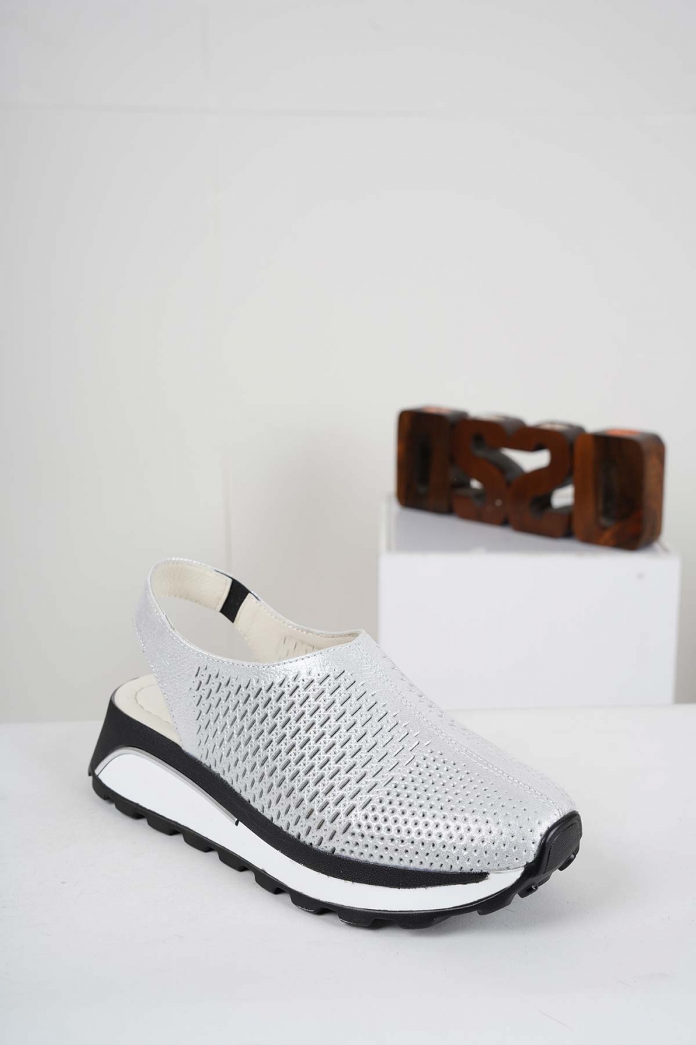 Hakiki Deri Gümüş Saten Kadın Casual Sandalet 241176506