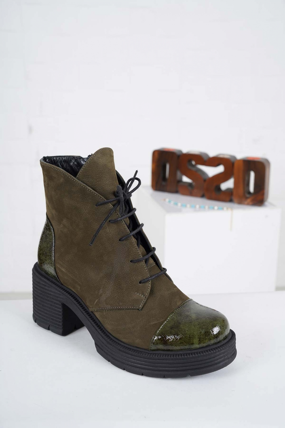 Hakiki Deri Haki Nubuk-Yeşil Kırık Ruga Kadın Topuklu Bot 232186208