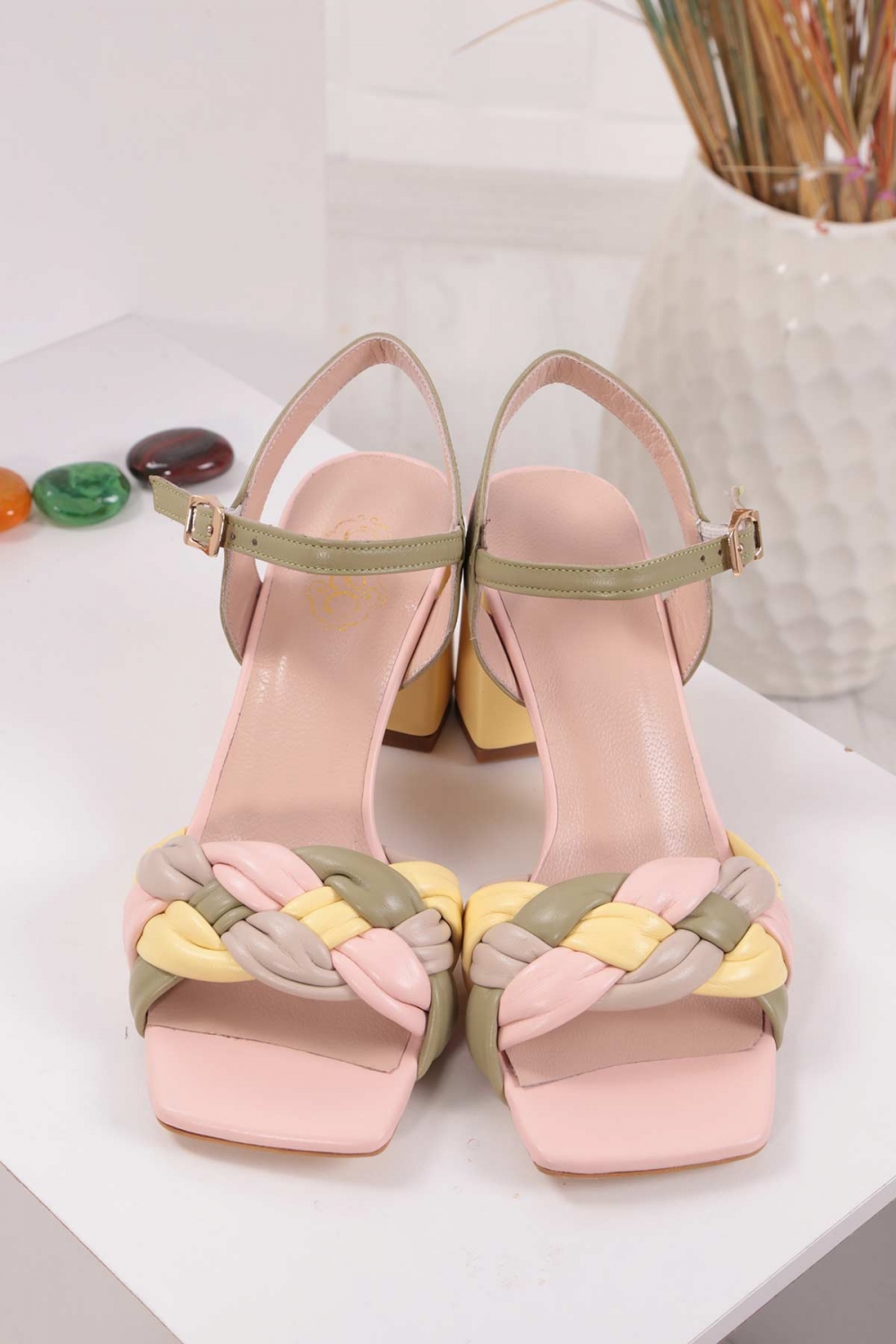 Hakiki Deri Haki-Pudra-Sarı-Açik Gri Kadın Topuklu Sandalet 211127524