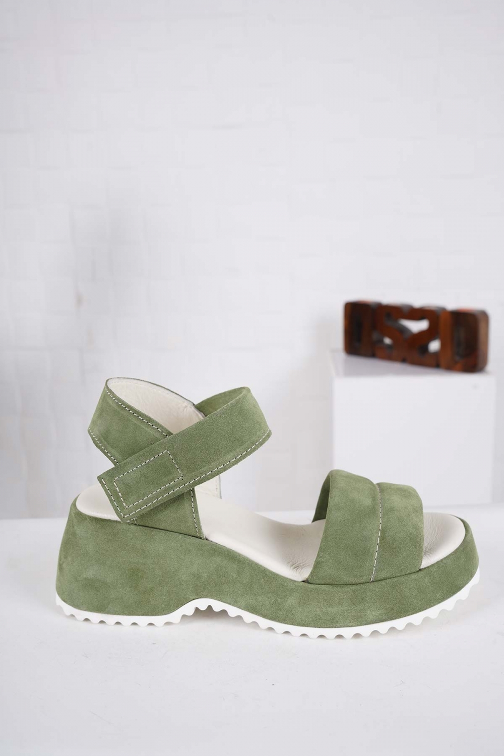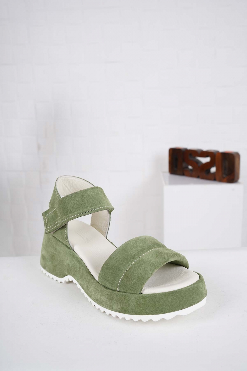 Hakiki Deri Haki Süet Kadın Dolgu Topuk Sandalet 241135501