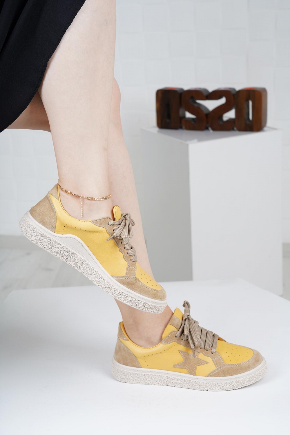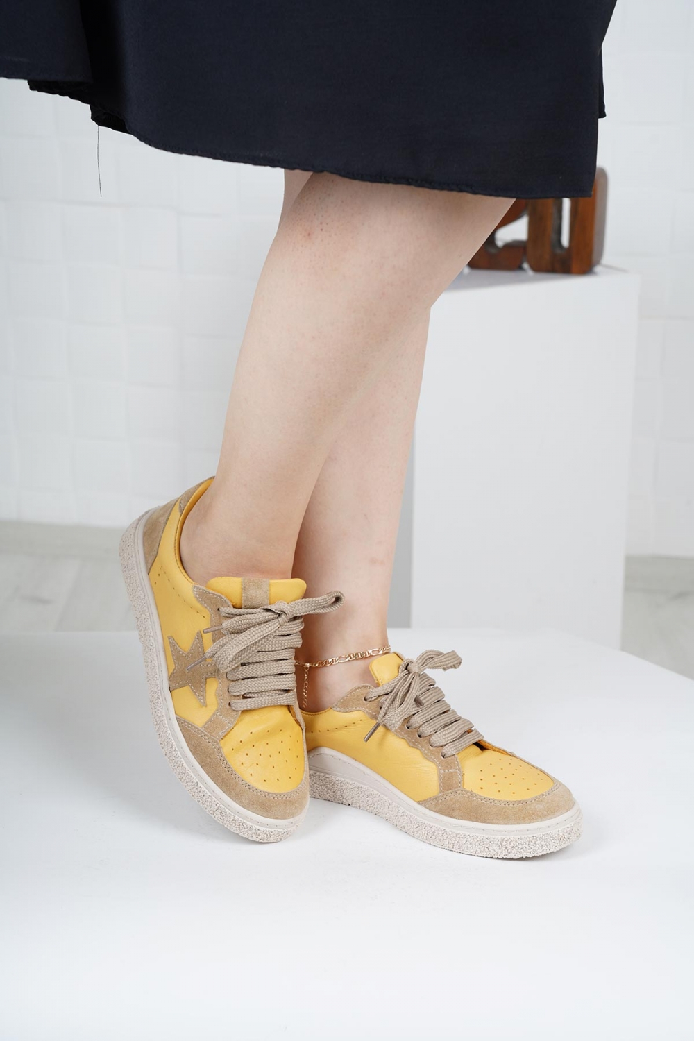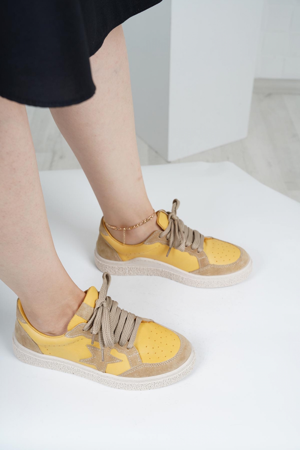 Hakiki Deri Hardal-Bej Süet Kadın Spor Ayakkabı 222220101