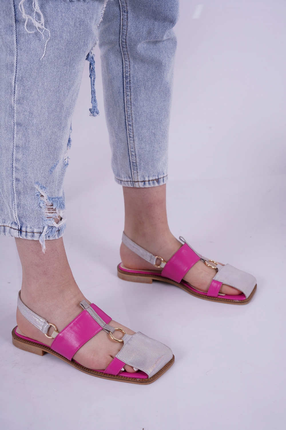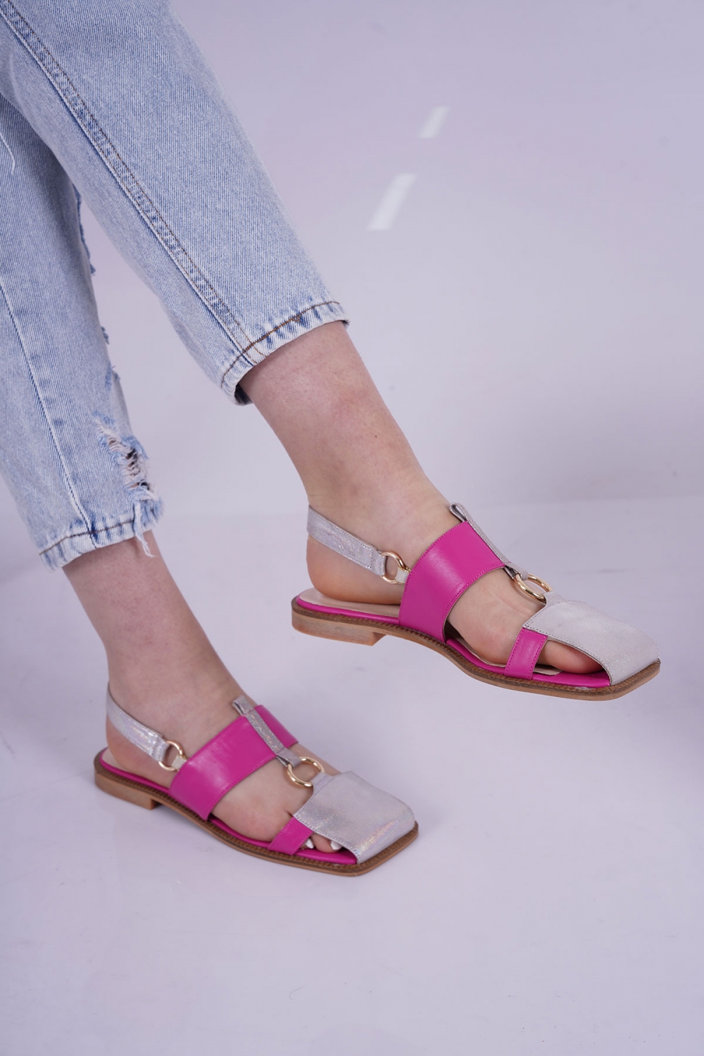 Hakiki Deri Hologram-Fuşya Kadın Burun Kapalı Sandalet 221127515